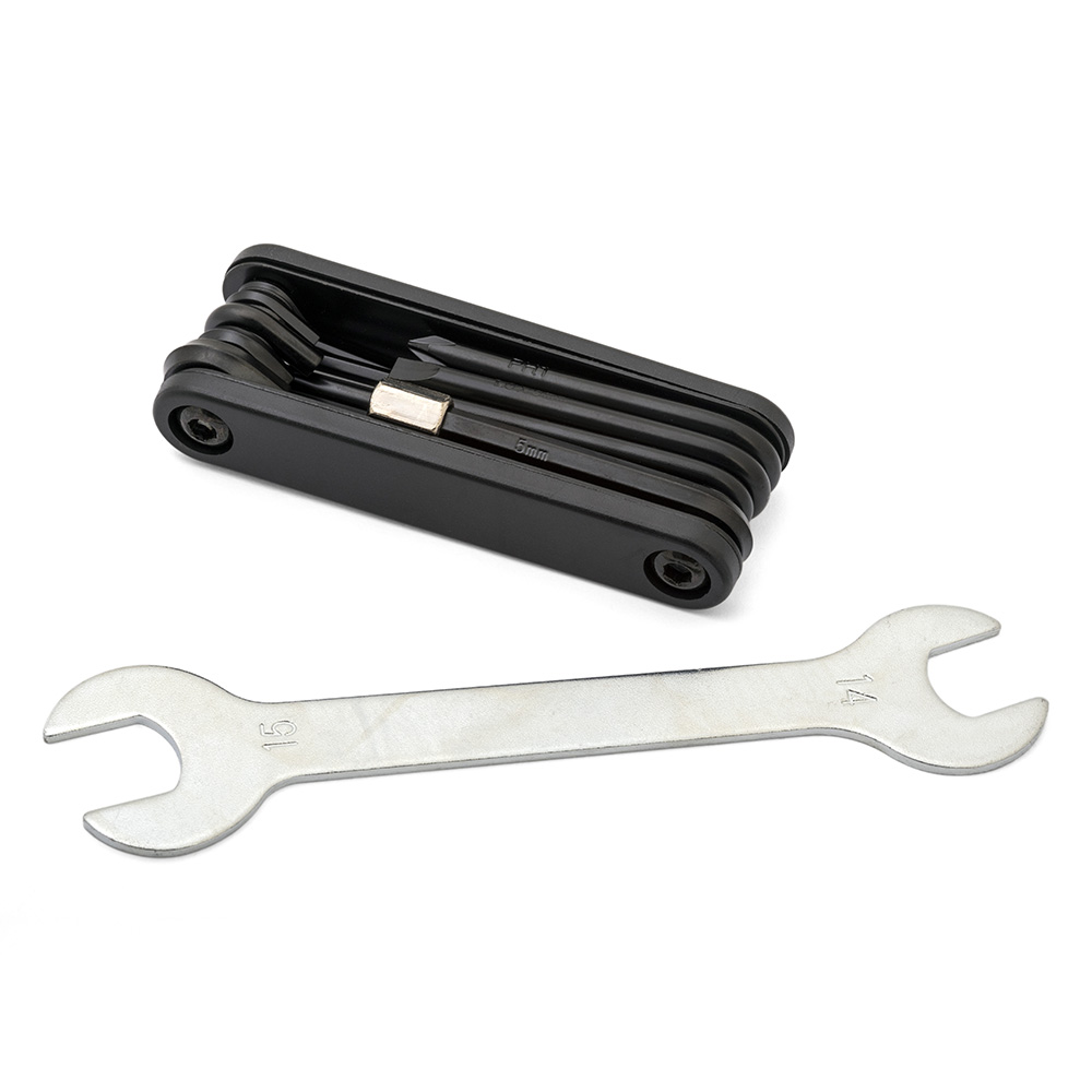 - Hex Keys (Allen type) sizes: 2,3,4, 5, 6mm and 8mm chrome adaptor.