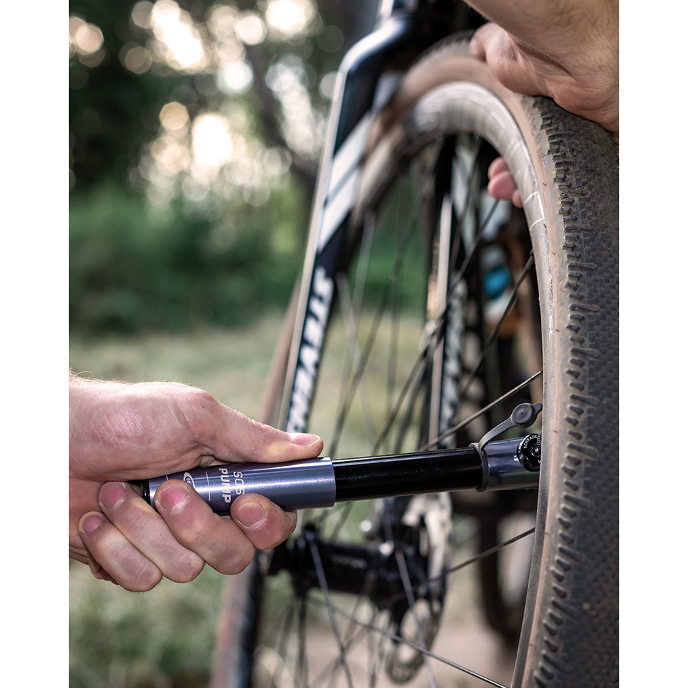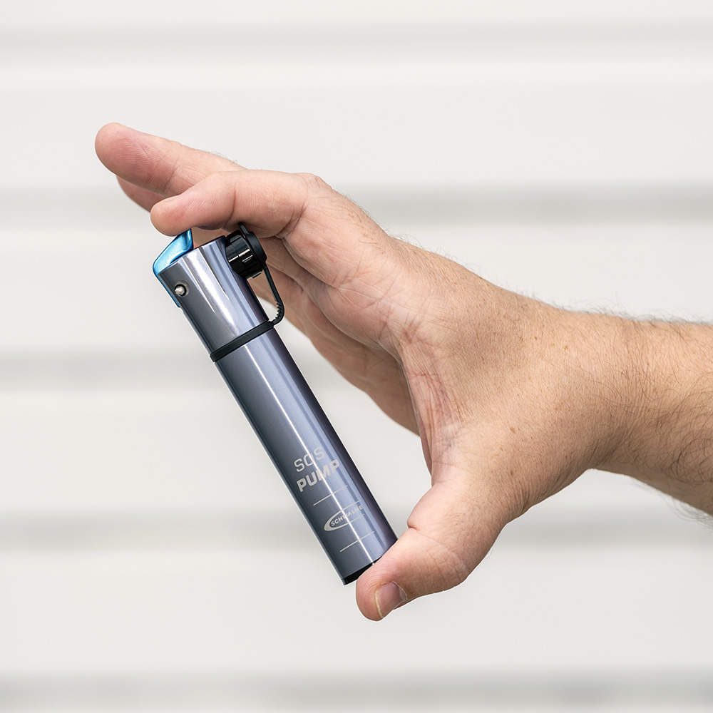 The Schwalbe SOS pump is a micro-sized pump for emergencies, due to the compact size it is perfect for carrying in a jersey pocket or attachment to the frame via the bottle cage mounts.