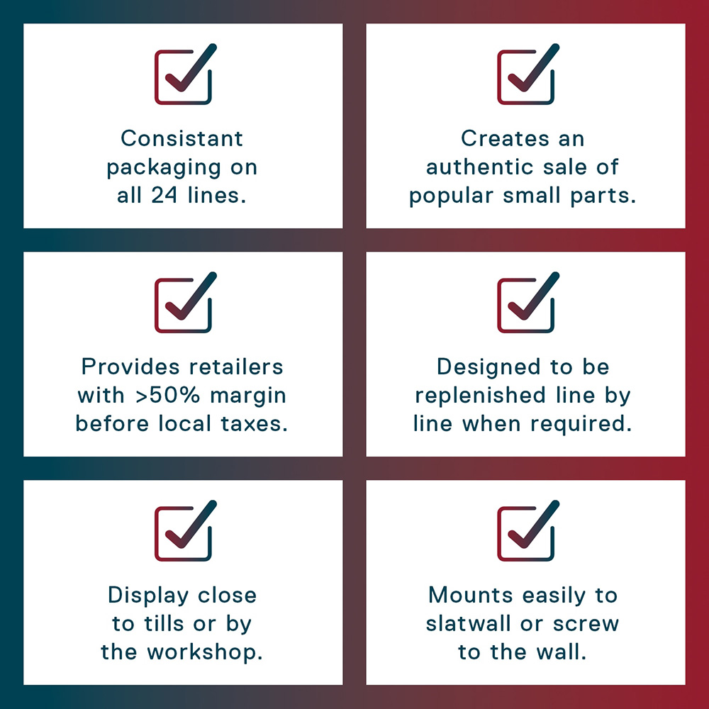 - Individually barcoded bags to create an authentic sale of popular small parts