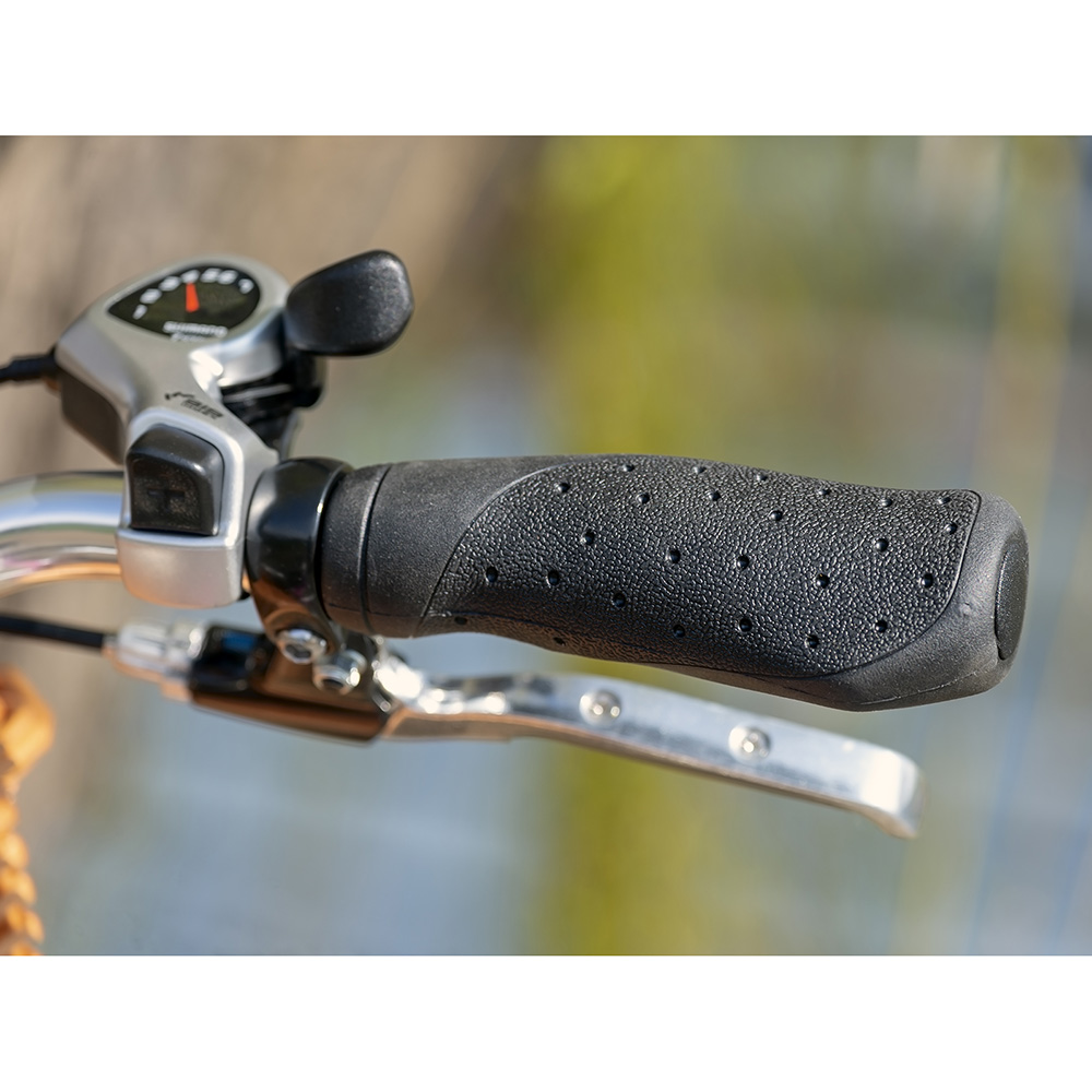 With an overall ratio range of 250%, 7 speed Shimano Tourney series Indexed derailleur gear system provides a useful range of gears for the majority of Urban cyclists. The simple push-button operation with an indicator window makes derailleur gear operation a breeze, even for the inexperienced user.