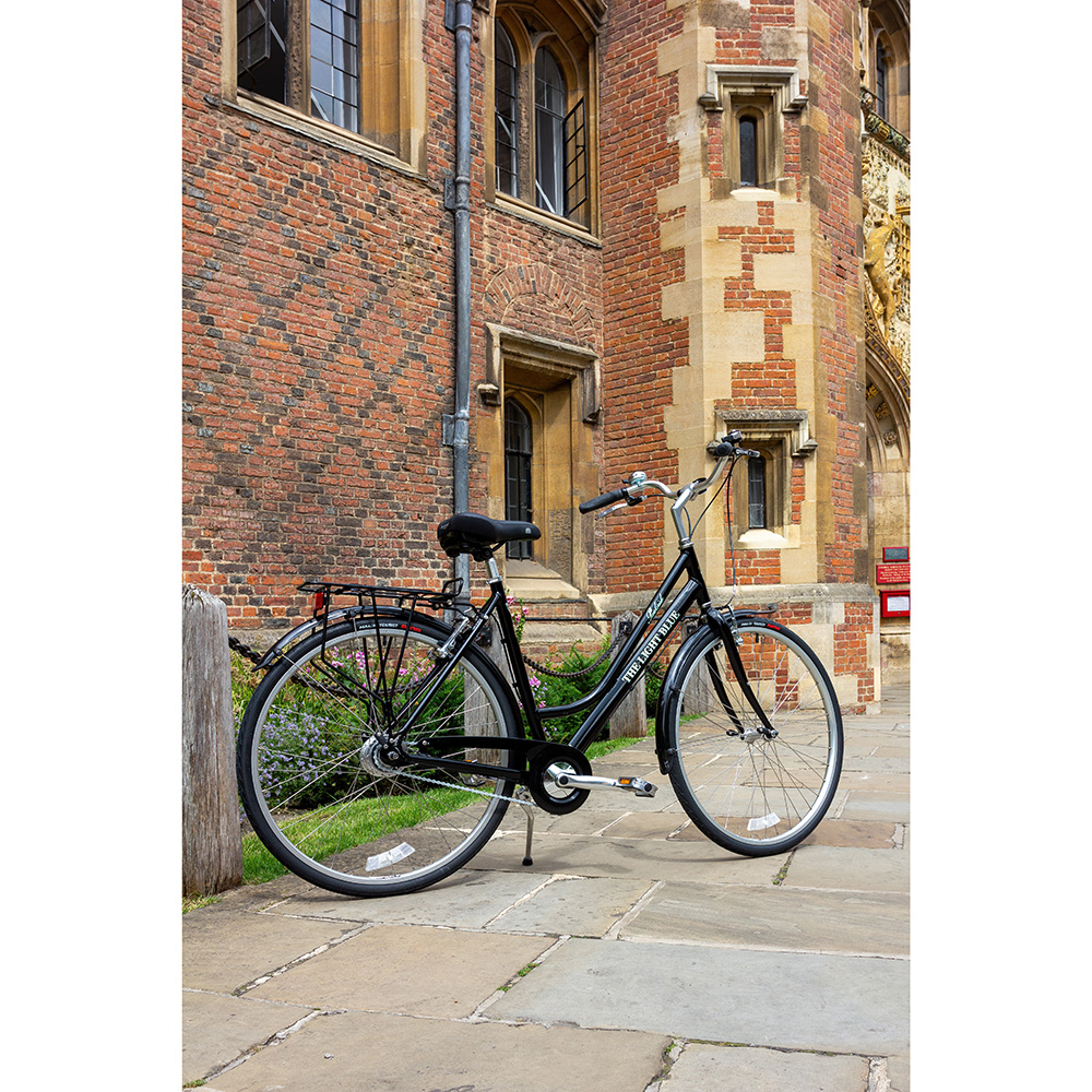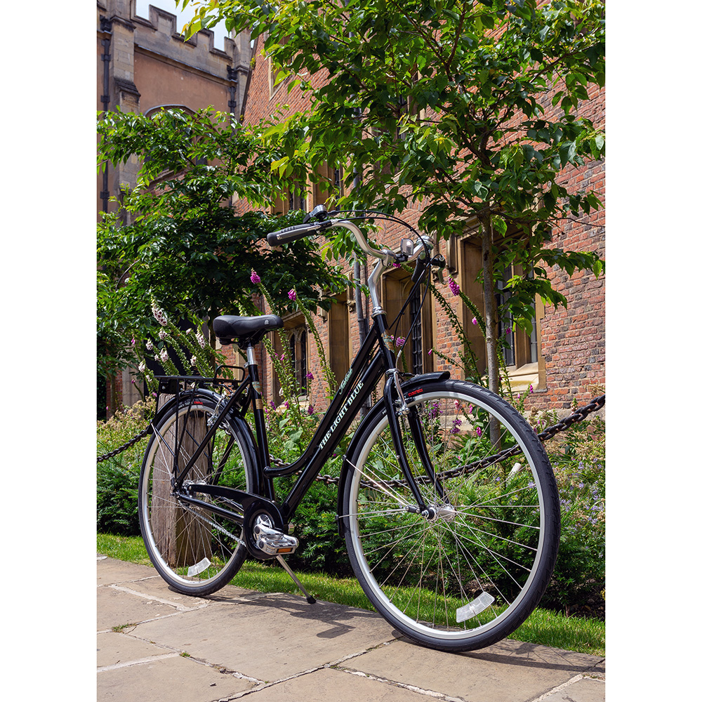 With an overall gear ratio range of 256%, the latest Sturmey Archer 5 speed internal hub gear system provides a useful range of gear options for urban cyclists that may encounter some more challenging landscape undulations than perhaps Cambridge has. Simple gear selection using the alloy thumb shifter makes changing gear a breeze, even for the inexperienced user perhaps finding themselves stationary at the traffic lights in an inappropriate gear.