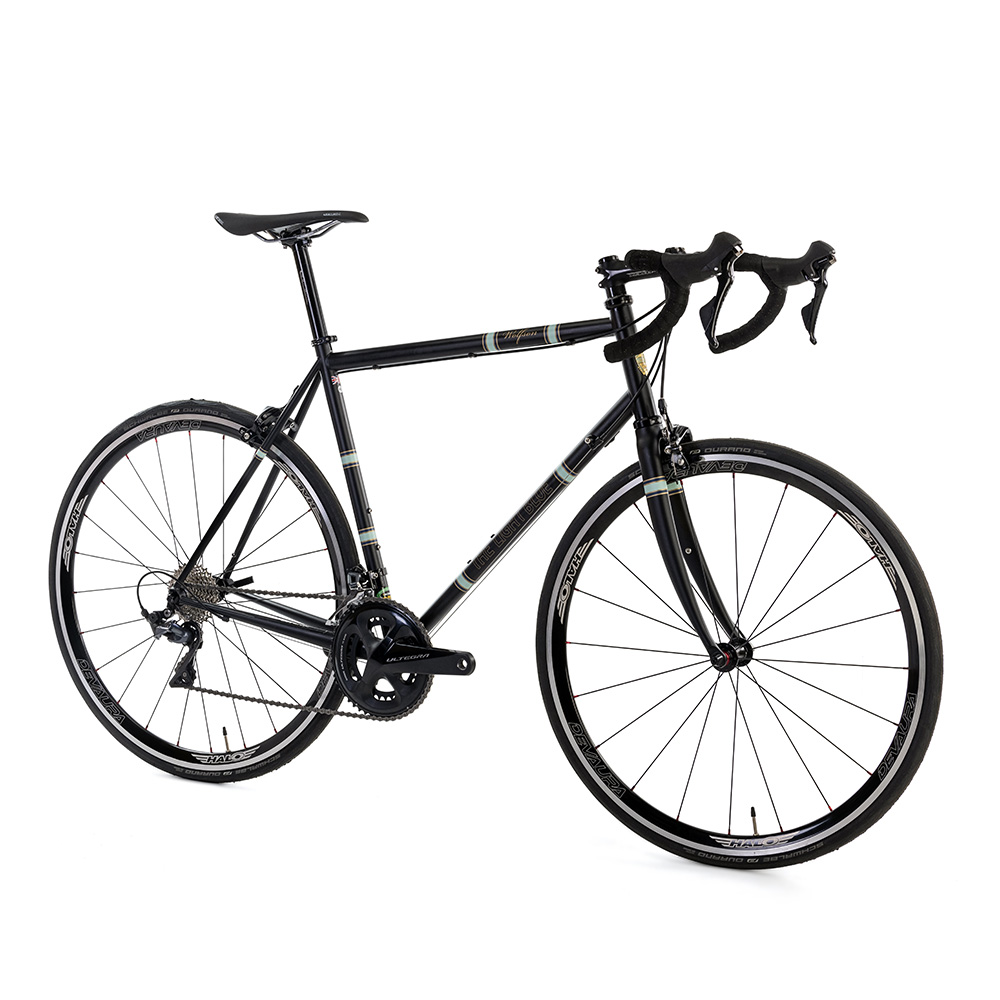 Our Wolfson frame is constructed with Reynolds’ flagship 853 butted steel tubeset, to provide a fast, but extremely compliant ride. The frame features variable size sports geometry, custom Bi-oval 853 downtube to reduce lateral bottom bracket flex and improve power transfer to the rear wheel.