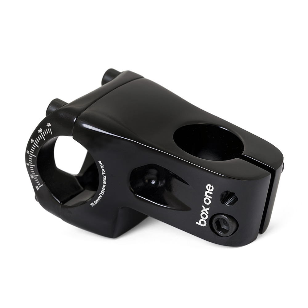 All Box One front load stems are engineered and crafted using Oversized Technology. As we follow the load paths down the handlebars and have focused attention on the stem-to-bar interface. Since the Oversized handlebars have an increased wall thickness and tube diameter in this sector we have reciprocated with an augmented stem interface with greater surface area. By moving material from low-stress areas. This has greatly minimised twist and contributed to responsiveness.