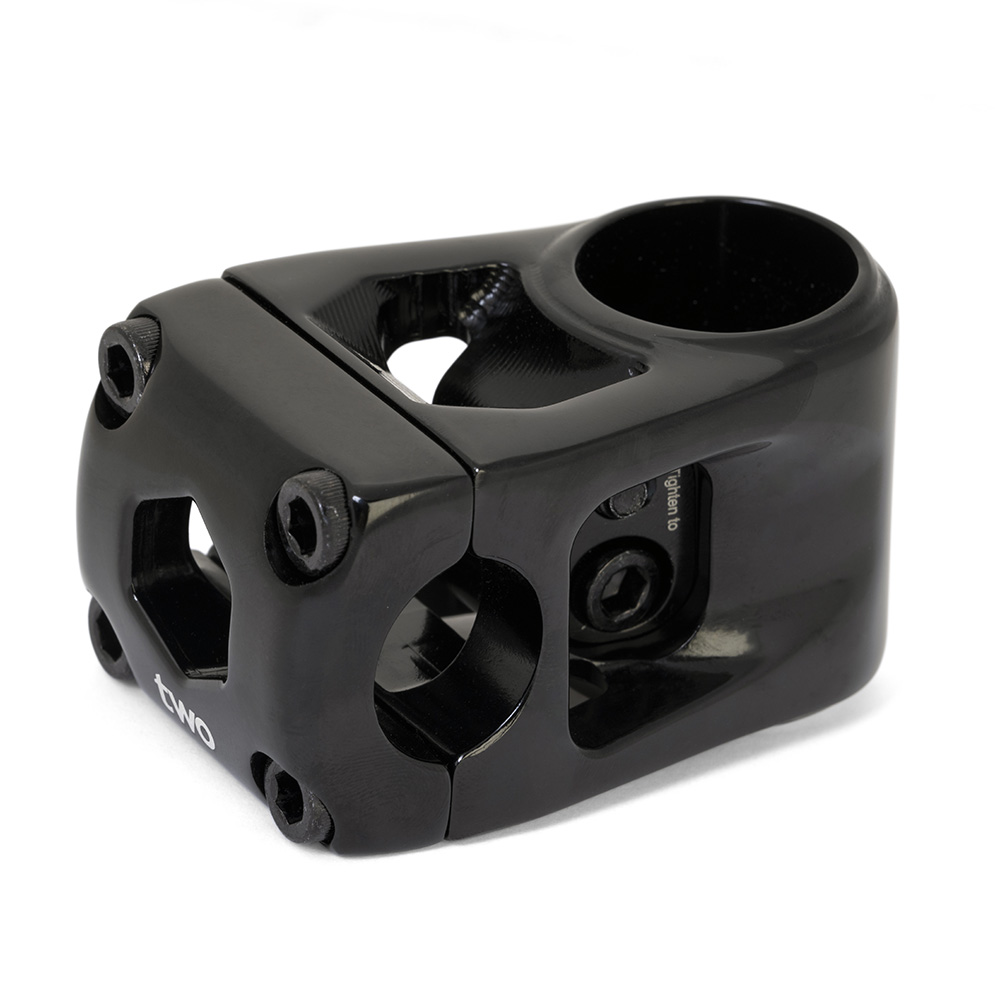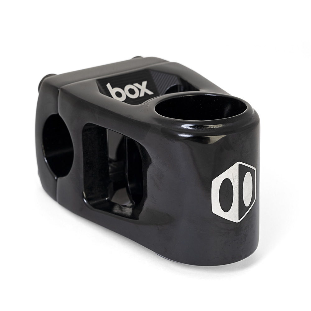 Box Two Centre clamp Hollow stems are cold forged from the highest quality 6061-T6 aluminium available. Featuring an open skeletal design and a dual mid-bolt wedge mounting system, they are lightweight yet maintain a very high level of strength. A 53mm extension stem weighs just 218 grams/7.7 ounces. By removing the rear pinch bolts and moving the mounting bolts to the middle of the stem, we reduced the weight and size and eliminated a serious hazard to the rider’s knees.