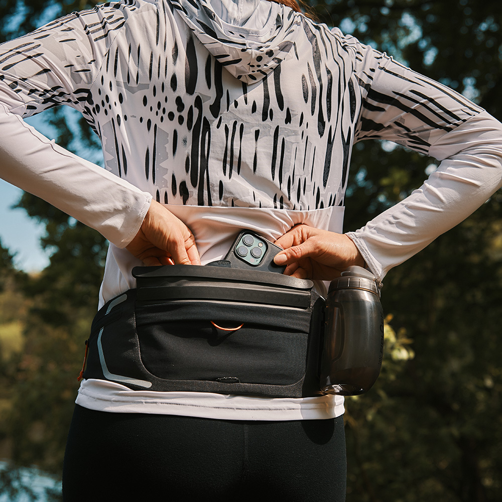 The new HIPBELT single is the perfect companion for all kilometre counters and record breakers. Whether it's a short lap around the block to stay fit or with ambitious goals and organised training runs: Jogging is a great balance to everyday life. If you get caught in the rain while running, your bag is already prepared. Whether it's a drizzle or a downpour, the hermetic sealing technology of the main compartment ensures your smartphone is 100% protected from water, mud and even the finest dust.