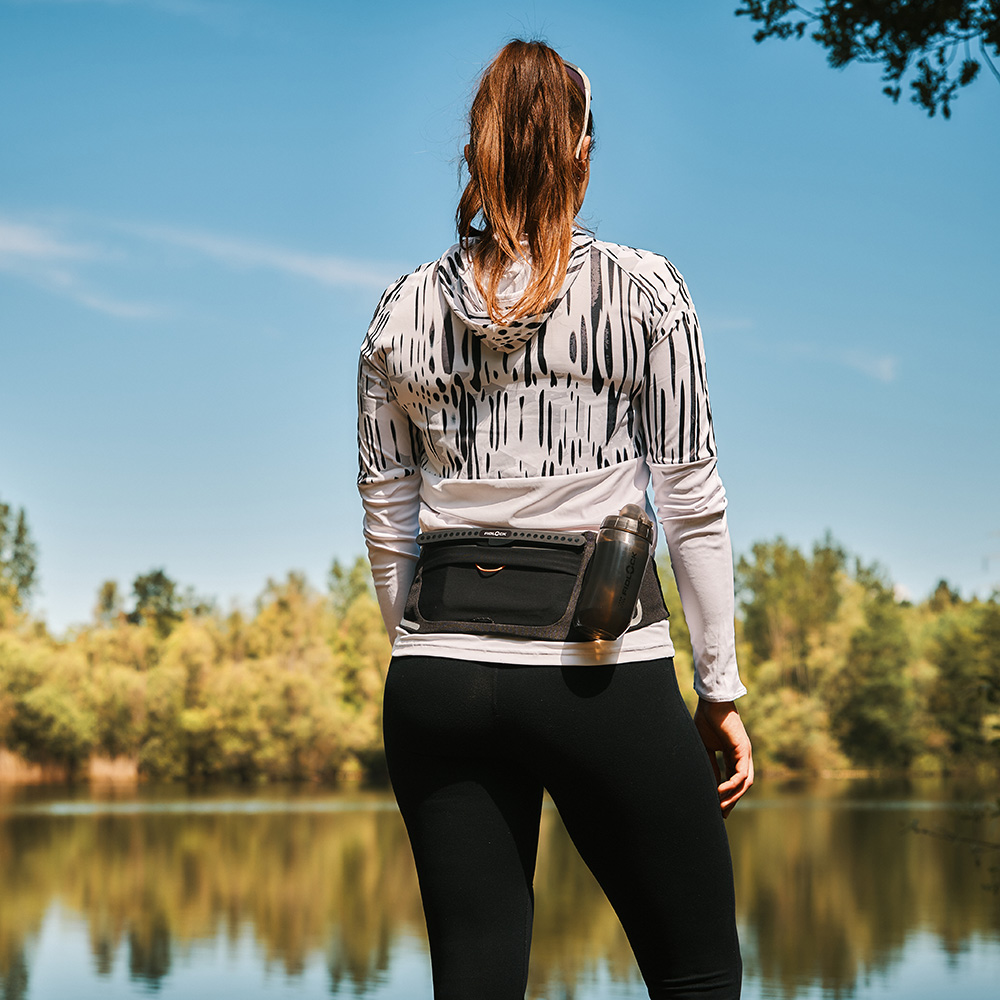 The TWIST bottle 450 included provides the necessary hydration during the run. The HIPBELT comes with an already integrated TWIST base so that the water bottle can be conveniently taken along on every run from now on. The positioning of the bottle on the hip ensures a comfortable fit and a smooth run.