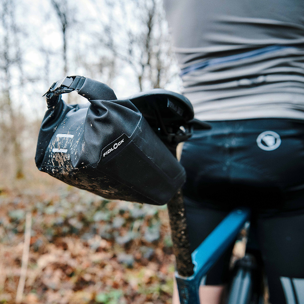 The waterproof material ensures durability and protection from the elements, while the slim profile ensures that the ride is not impaired by bulky equipment. Thanks to the roll-top closure with FIDLOCK's V-BUCKLE S, the PINCLIP saddle bag can be closed easily and securely and the bag volume can be adjusted variably.