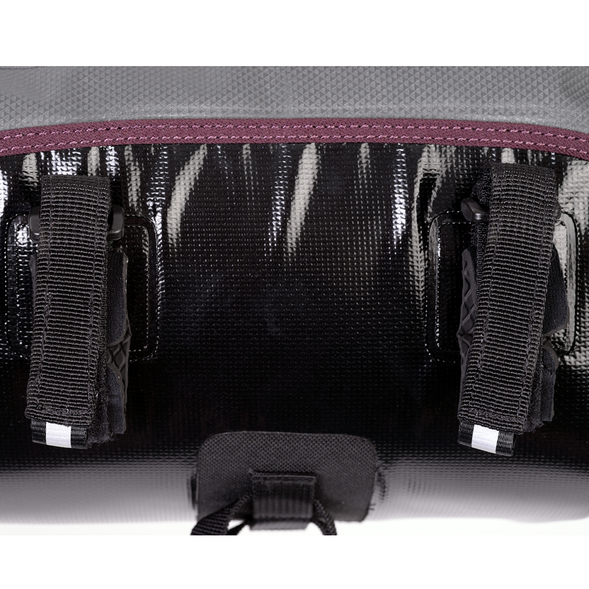 The Passport handlebar bag is a simple dual ended barrel style dry-bag with integrated rubberised nylon straps to attach it to your handlebars. You can stuff loads of lightweight items such as clothing, sleeping bags etc. If you pack the handlebar bag nice and light your steering will also be nice and light. The dual ended design also means you can alter the size of the pack depending on how much you fill it.