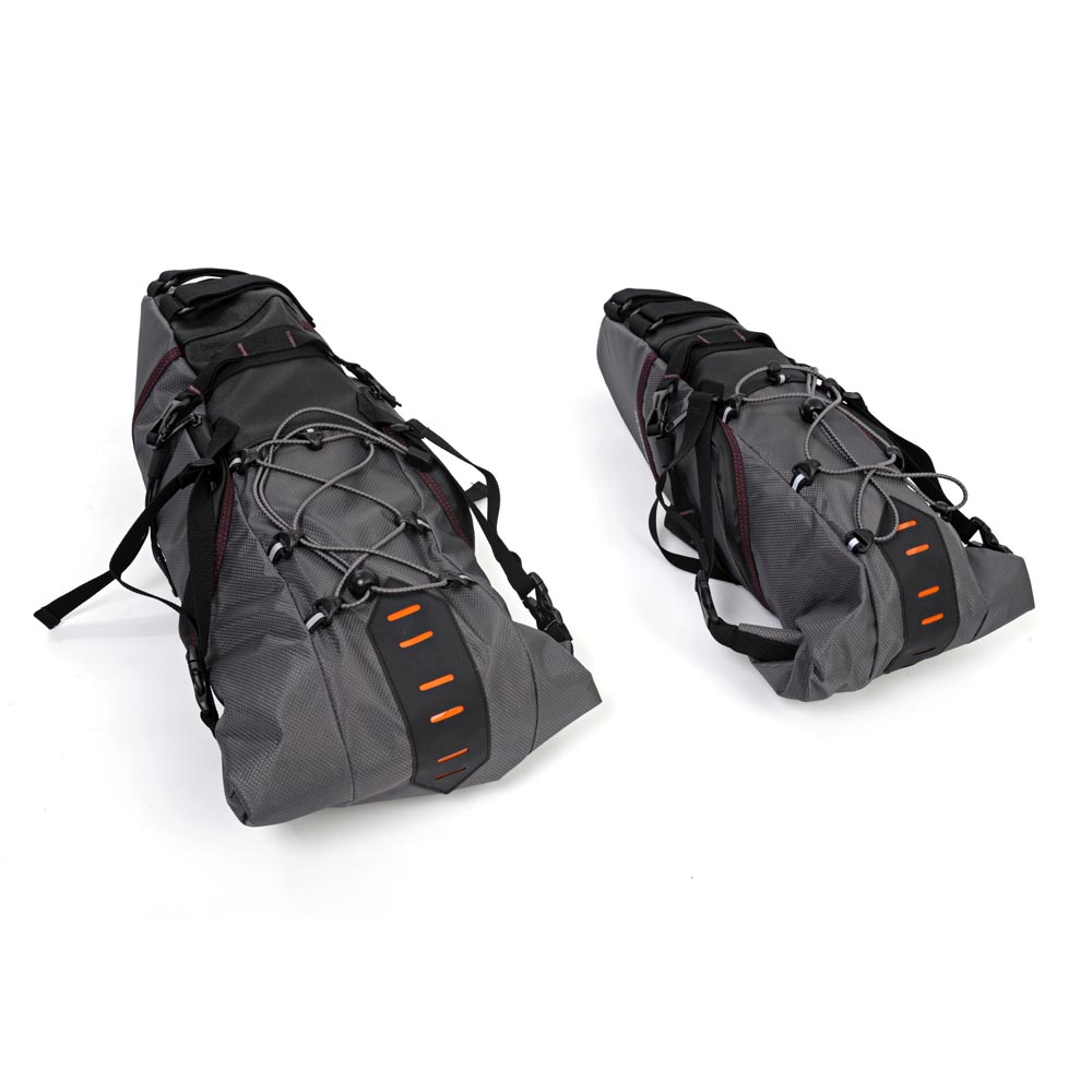 The saddle packs are available in two different sizes - small or large. Meaning you can choose how much kit to load on your bike. The packs are fully waterproof as they have a internal drybag.
