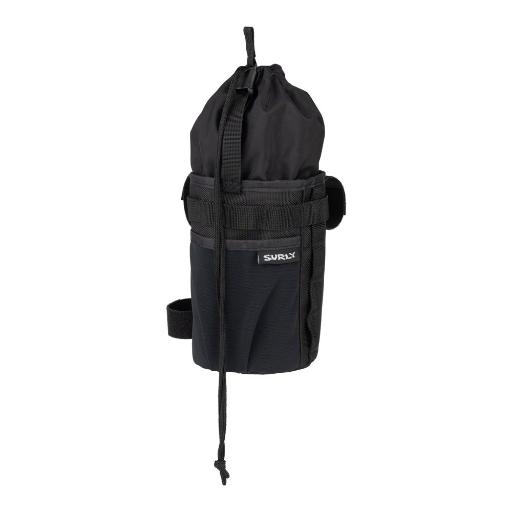The Surly Dugout Bag is a handy vessel for sips, snacks, and all other substances in need of a secure yet accessible attachment. Engineered with one-handed operation in mind, interior cargo and exterior pockets keep all replenishing necessities at arm’s length. This bag mounts onto any size handlebar and frame with four connection points and offers a cosy spot for 3 pounds of cool-looking rocks or any 1-litre beverage of your choosing.