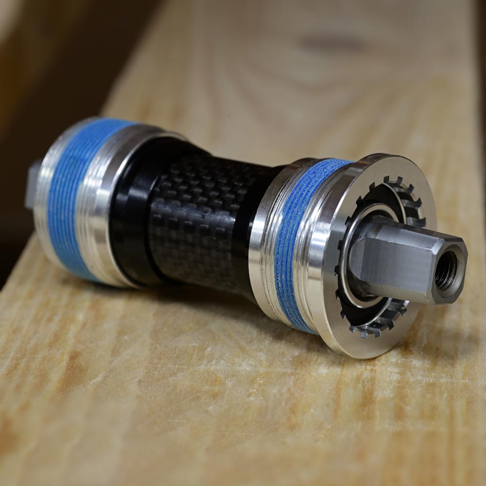 High quality traditional style Cr-Mo JIS square axle BB with precision cartridge bearings, lightweight forged Alloy cups and carbon fibre spacer.