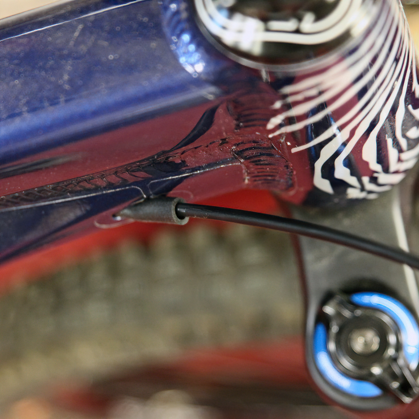This sheath fits around your brake hose or gear cable on internal routed cables and dampens the sound to let you get back to concentrate on the trails ahead.
