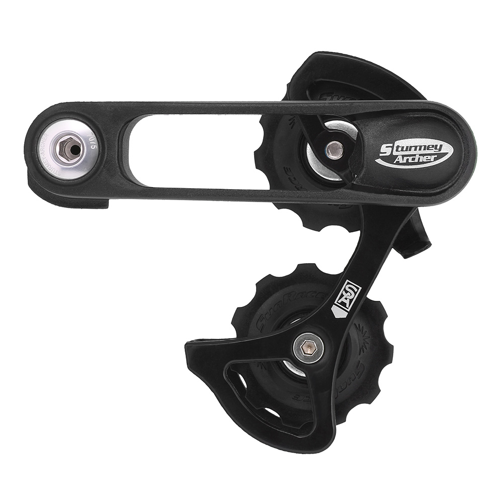 CTS80 sprung chain tensioner intended for use with Sturmey Archer hubs in black.