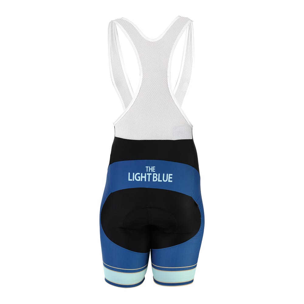 The Light Blue gents' bib shorts feature a quality compression Lycra & deluxe stitching. An Italian gender specific ergonomically preshaped & seamless TMF chamois features multi layered triple density (3d) foam padding with an Eschler antibacterial microfibre surface. This chamois is designed long distance all day road and MTB riding.