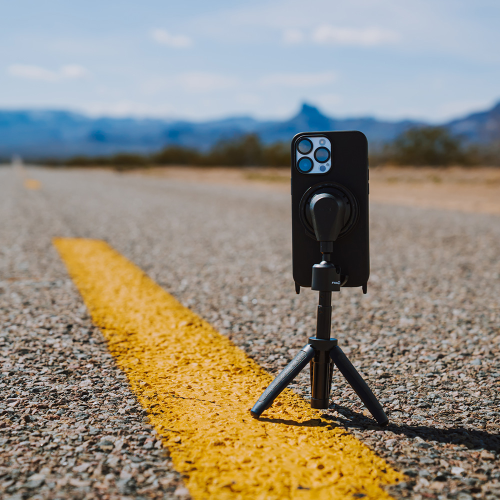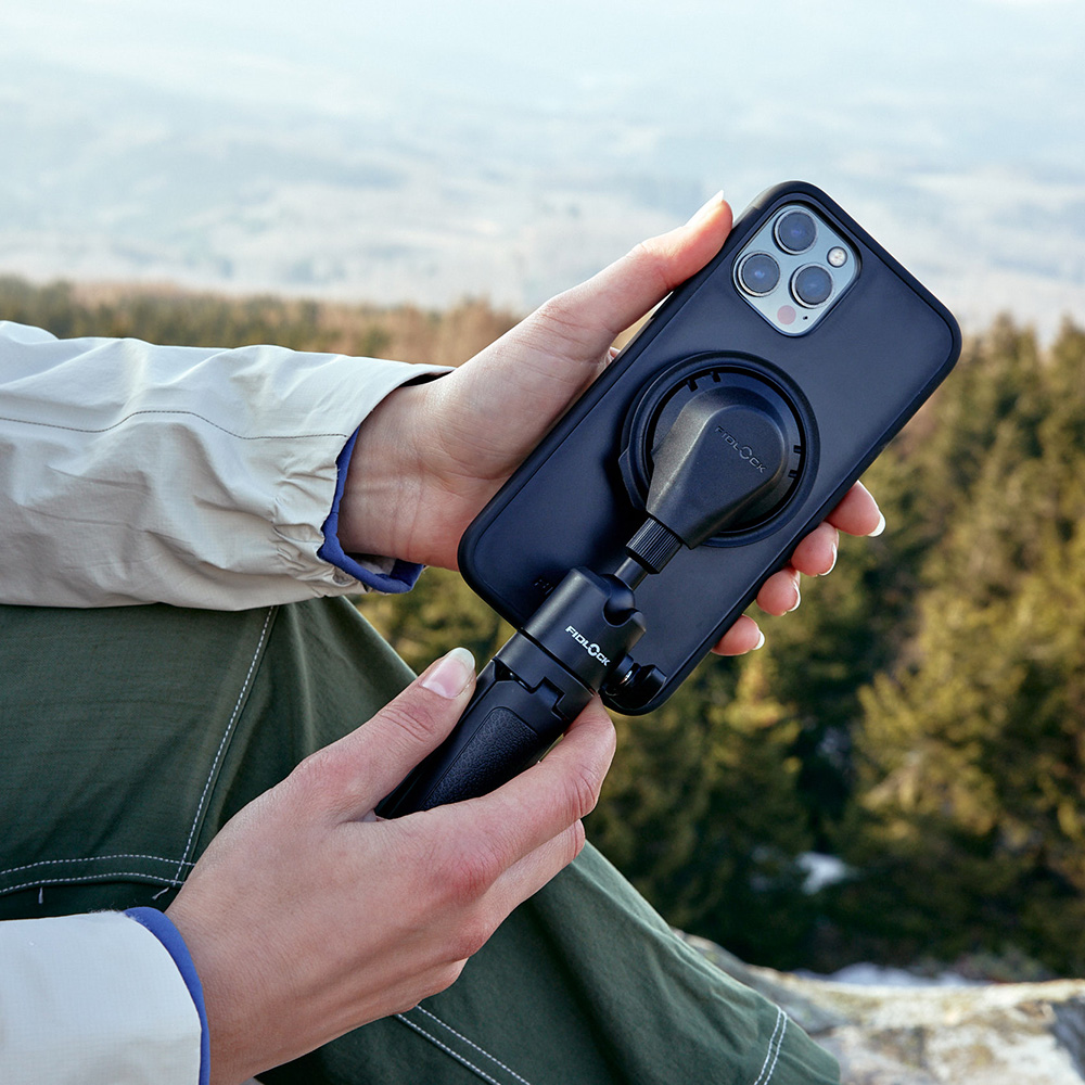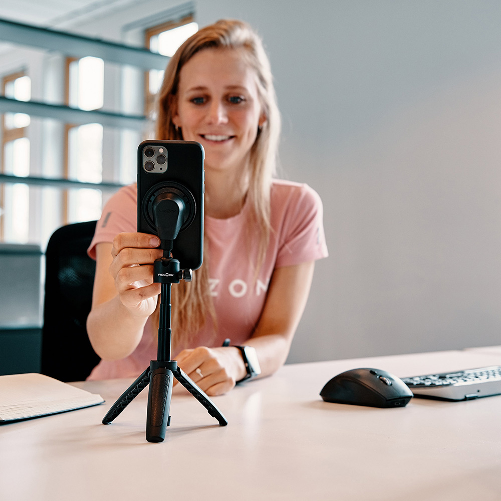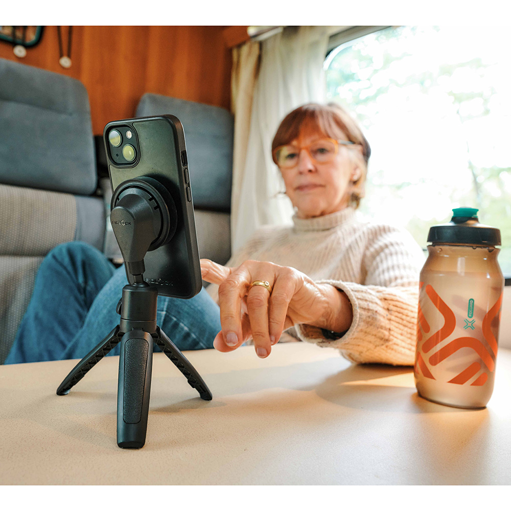 Like all the other VACUUM attachments our VACUUM mini tripod base is easy to use with one hand: To attach your smartphone to the base just hold it shortly before it. You will feel the magnetism doing the rest, centering the smartphone on the base.