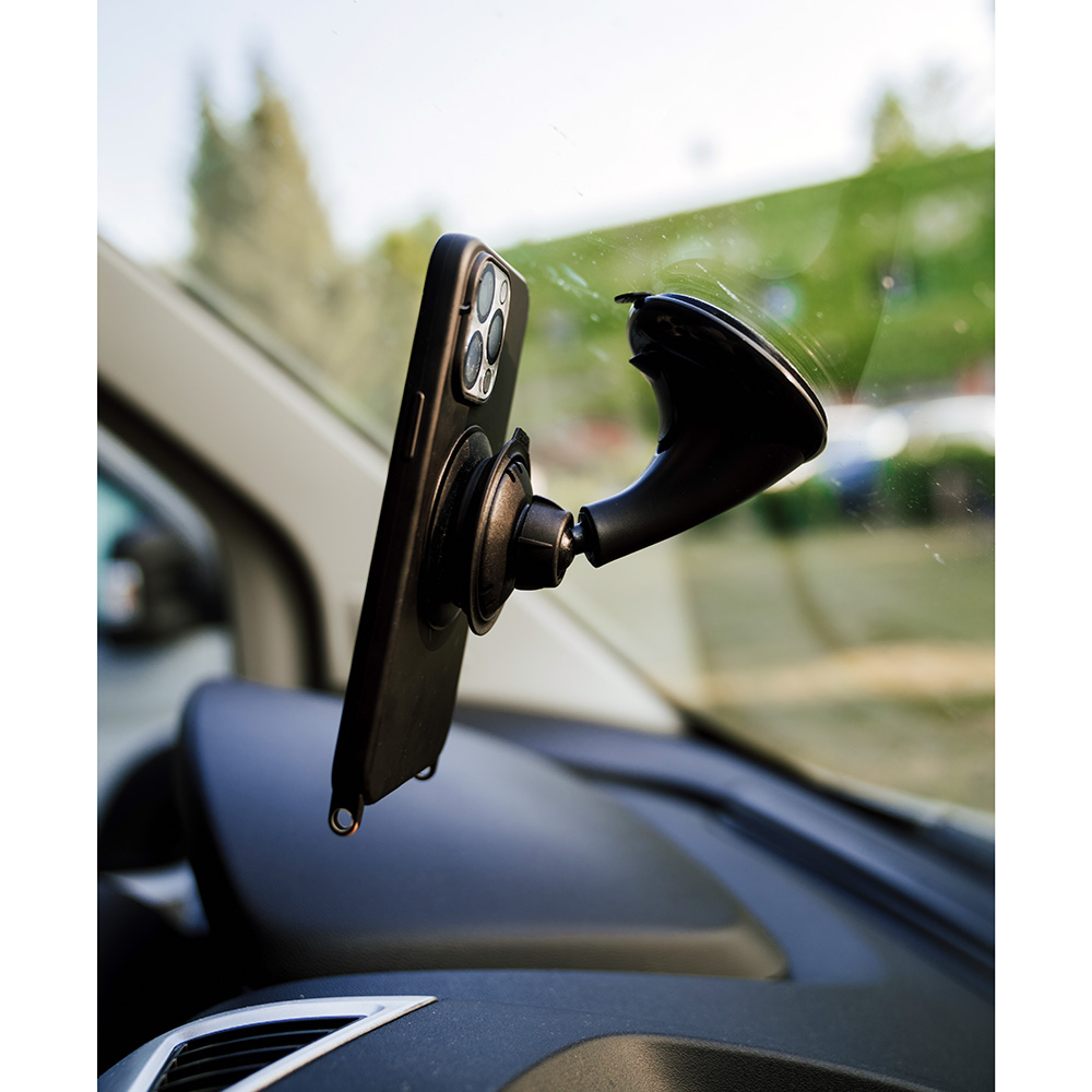 The VACUUM car suction base is securely and quickly attached to the windscreen with a suction cup. This can be released again using a lever so that the holder can be attached in a different position. In addition to this suction cup, the VACUUUM car suction base consists of another magnetic suction cup with a control lever and a ball joint that allows the angle of the smartphone to be individually adjusted. The perfect navigator for travelling.