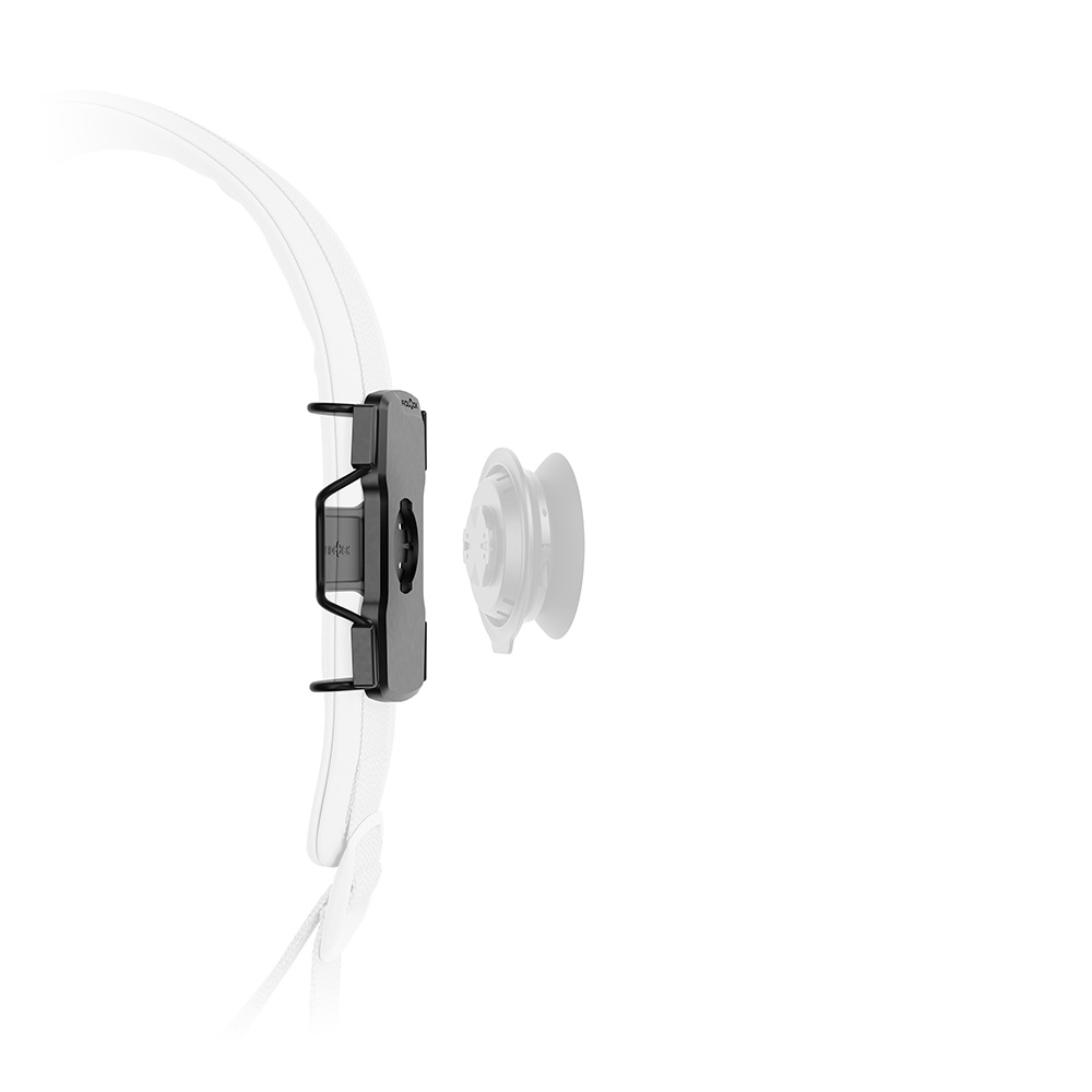 The VACUUM Tex Base consists of the VACUUM turn base and the VACUUM tex plate. The tex plate is placed on the desired position on the strap and fixed with the silicone fastening band. The VACUUM turn base is inserted into the tex plate and rotated by 90°. The VACUUM tex base is compatible with all VACUUM phone cases, as well as uni phone patches and uni phone cases. The smartphone is 360° rotatable, while a ratchet prevents it from rotating during use!
