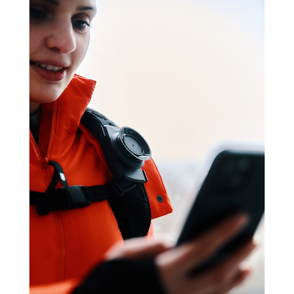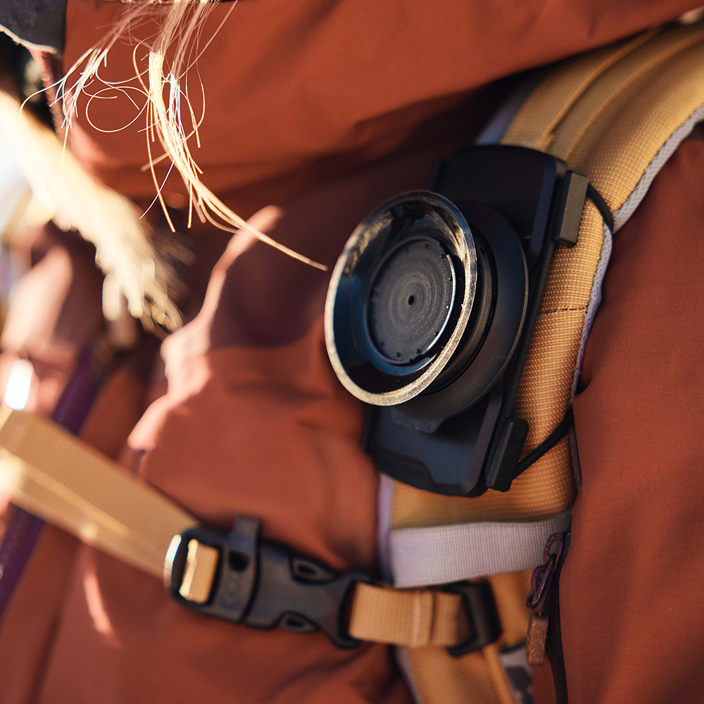 During any outdoor activity, the smartphone is securely attached to the backpack strap with the VACUUM tex base while remaining easily accessible. No more struggling to take off the backpack or searching for the smartphone. Quickly check the hiking route or capture the perfect panoramic moment with the smartphone camera. The VACUUM Tex Base is simply the perfect companion to focus on the small moments.