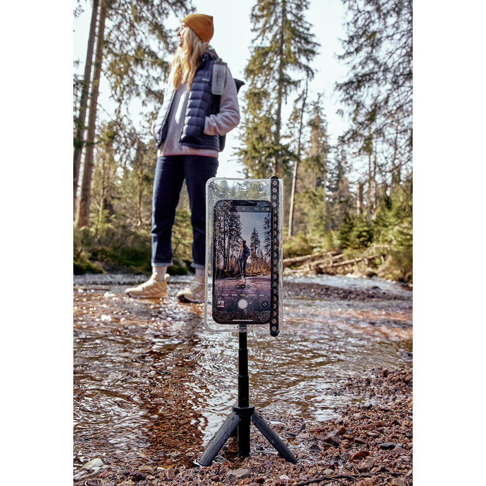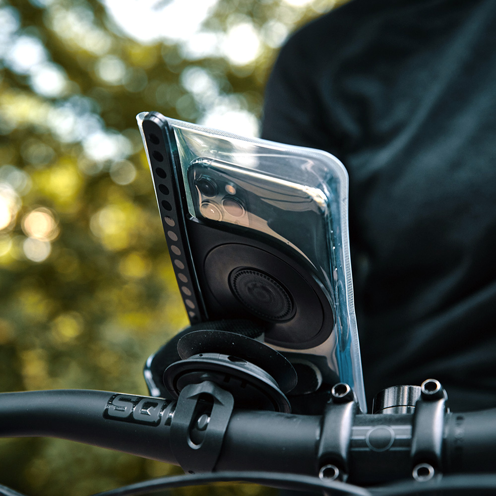 Thanks to the VACUUM geometry, the case is compatible with all VACUUM bases. Therefore, the smartphone is safely protected from environmental influences even mounted on a tripod, on a stroller, bike, or e-scooter.