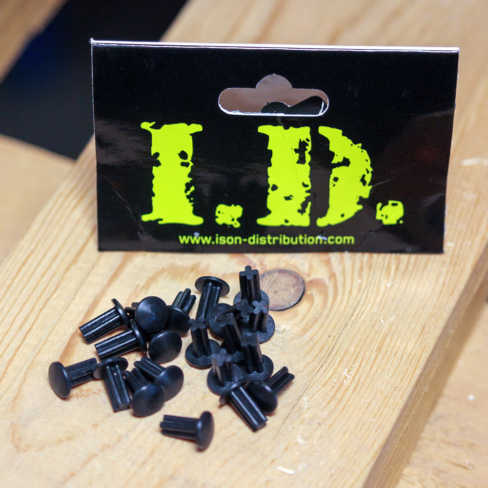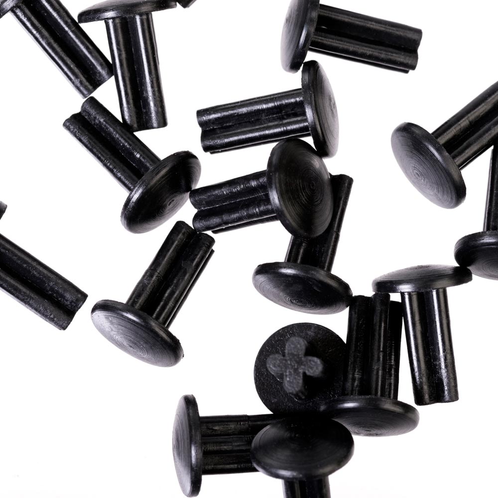 Rubberised plastic plugs that push-fit into M5 threaded bosses on frames & forks etc.