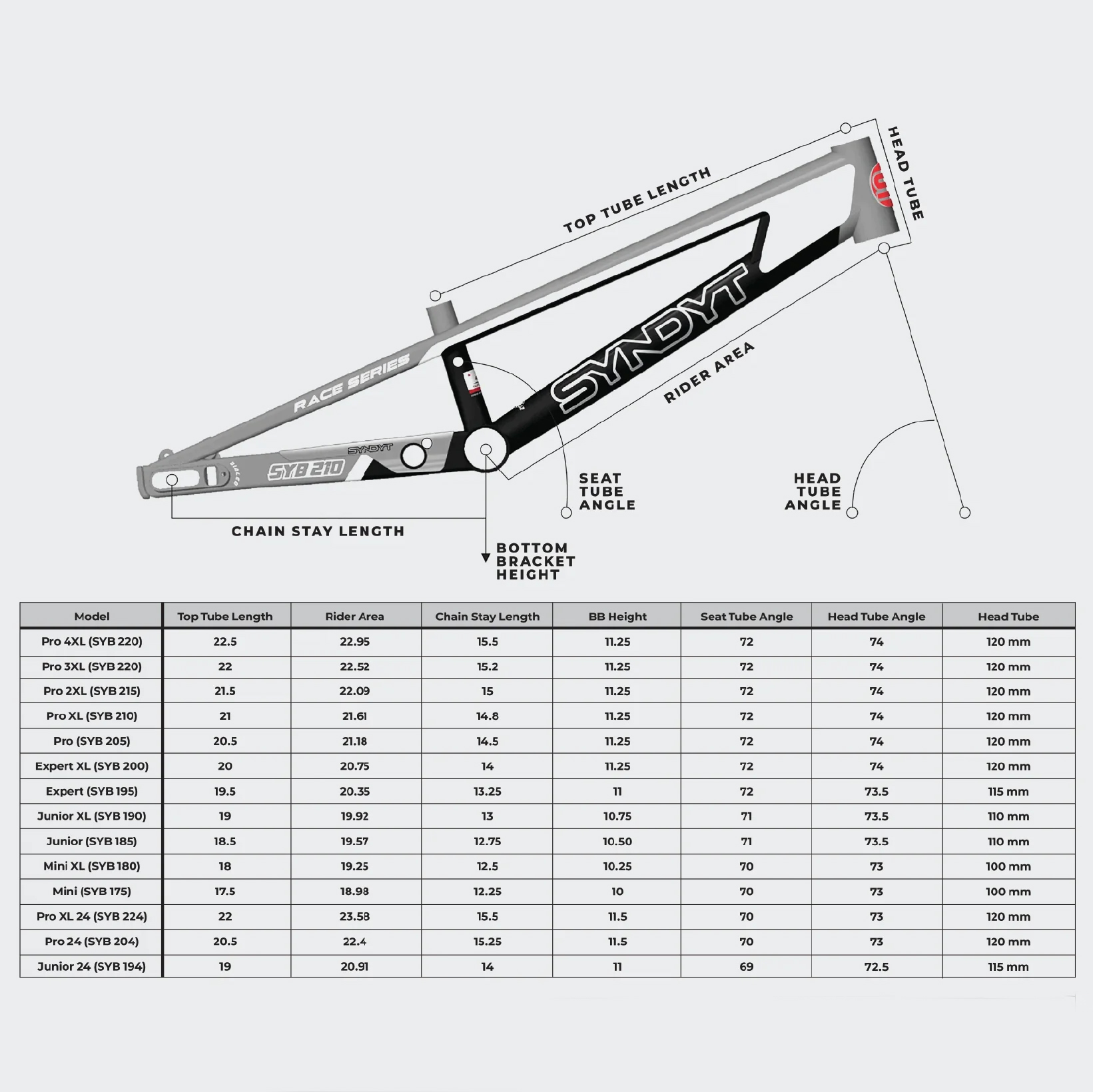 Introducing the SYB BMX Racing Frames, a groundbreaking evolution in BMX frame design that sets a new standard for performance and exclusivity within the Syndyt community. Crafted from premium 6061 custom handcrafted alloy, these frames embody the perfect balance of durability, lightweight precision, and an unparalleled ride quality. Employing state-of-the-art hydroforming technology and featuring triple-butted tubes, our frames deliver optimal power transfer and responsiveness, enhancing your overall riding experience.