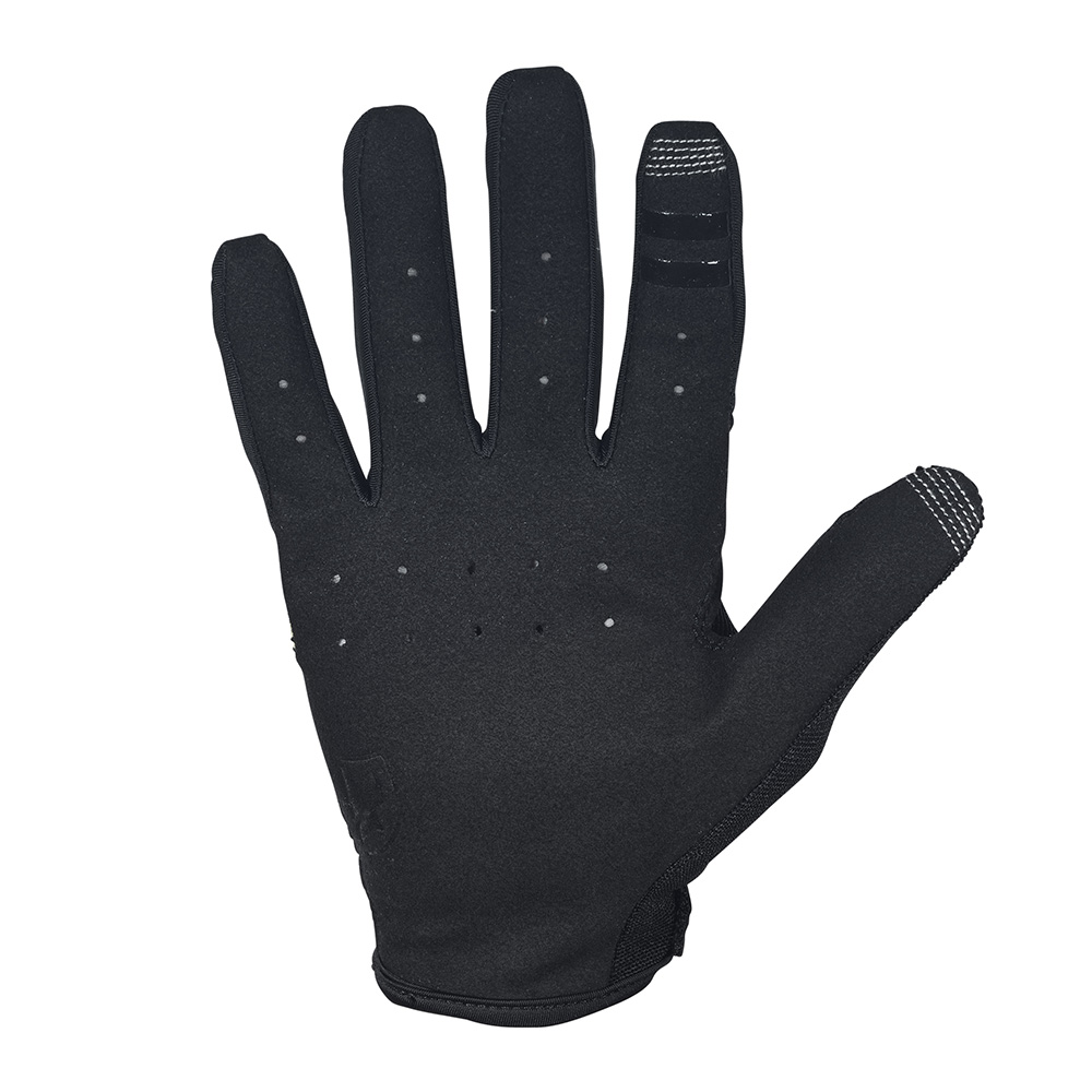 A close and comfortable fit is provided by the glove's ventilated 4-ways stretch spandex upper, while a vented hardwearing one-piece synthetic suede palm and sticky silicone print on the brake fingers give bear-like bar grip and precision bike control.