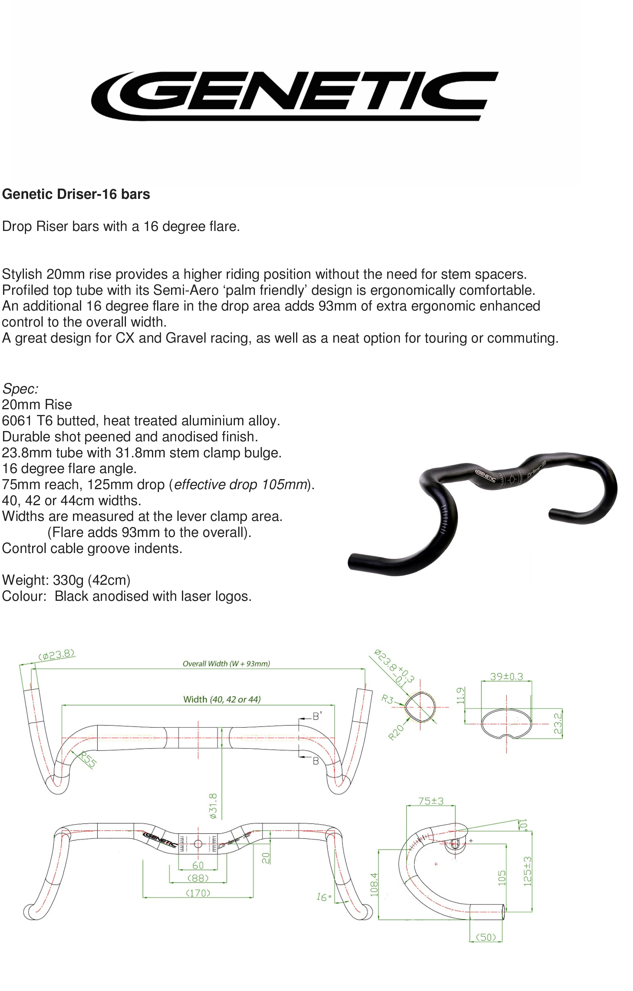 An additional 16 degree flare in the drop area adds 93mm of extra ergonomic enhanced control to the overall width.