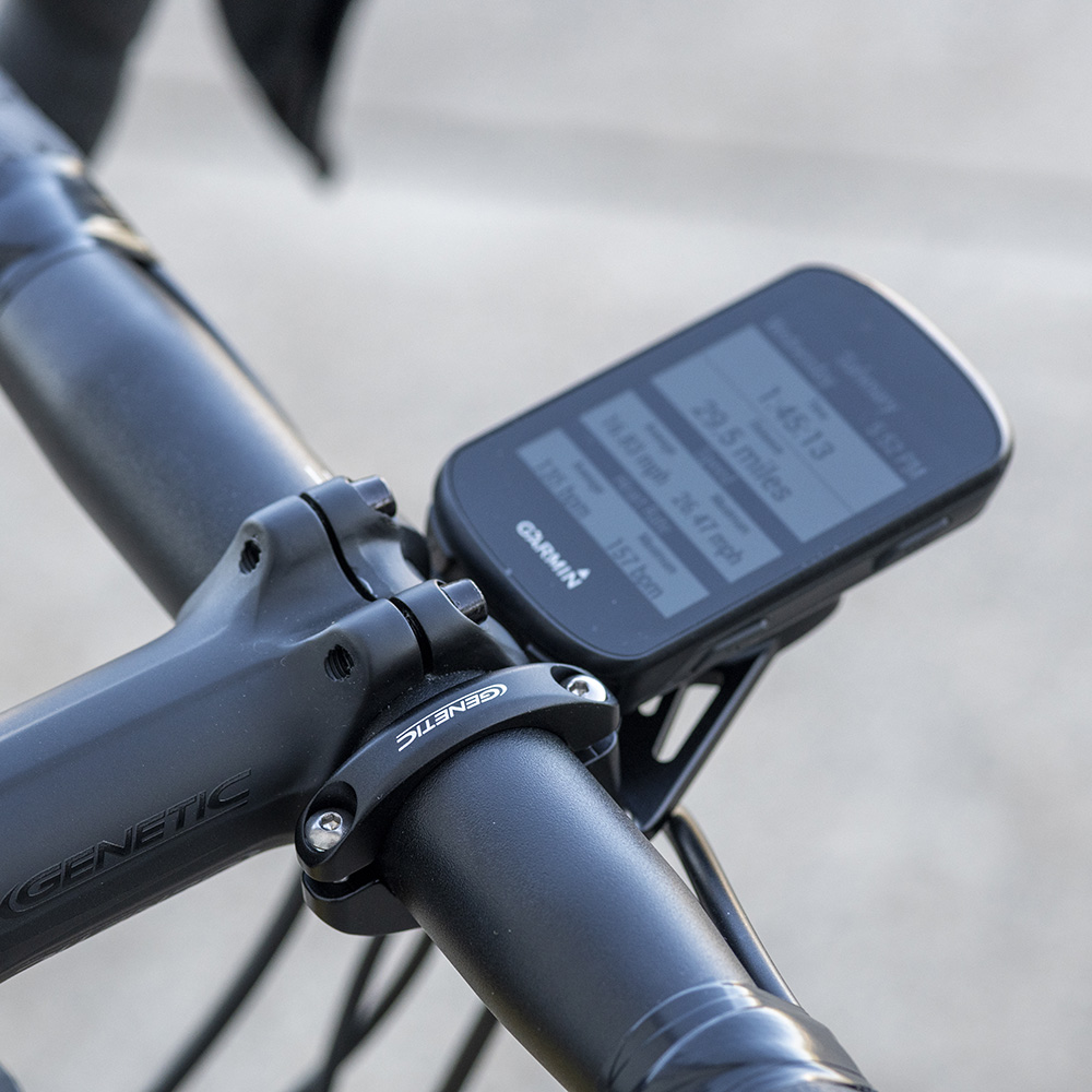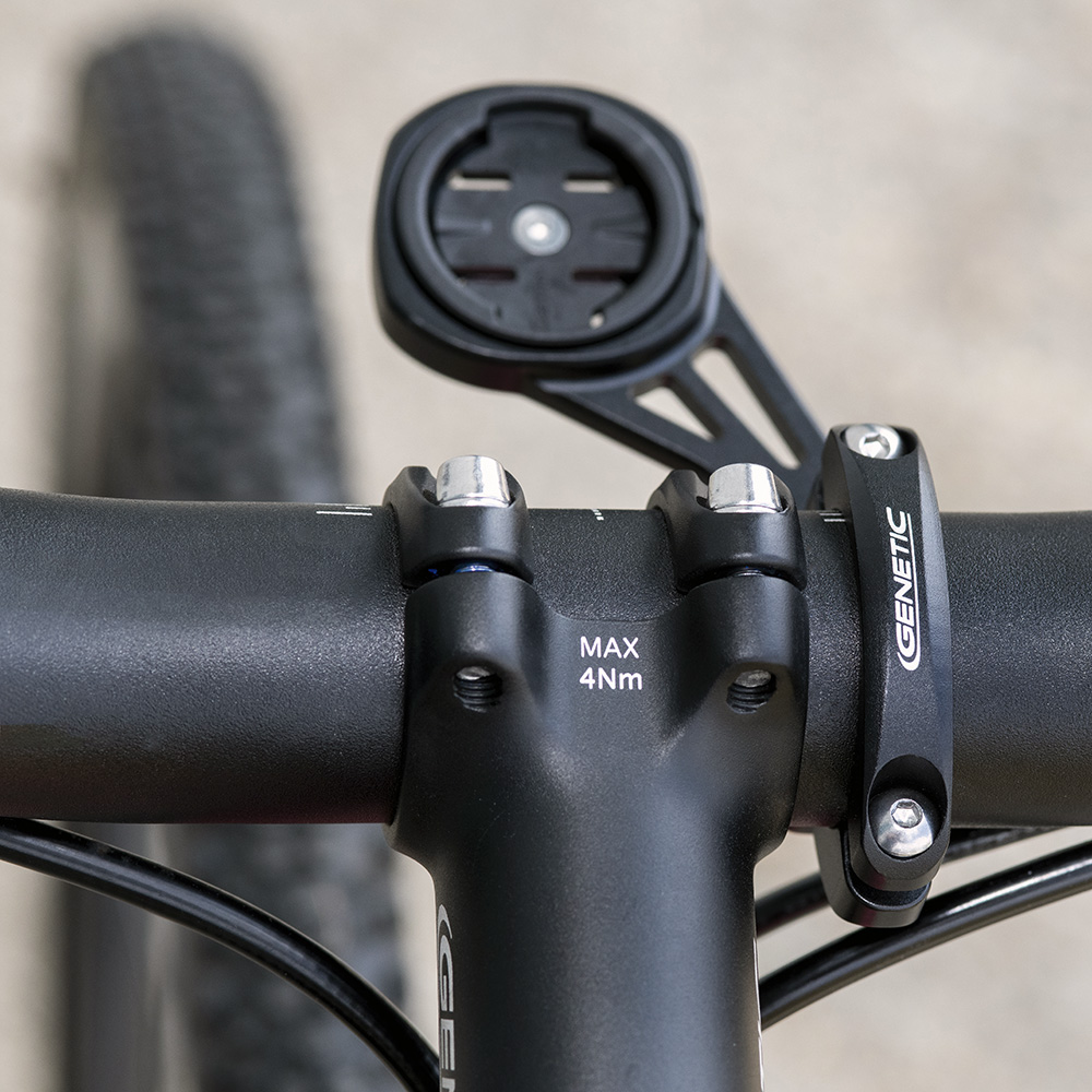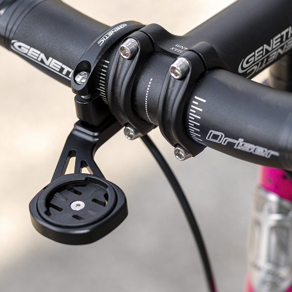 This high quality CNC machined aluminium clamp will neatly clamp onto your handlebars and places your GPS in a forward position of the handlebar stem.