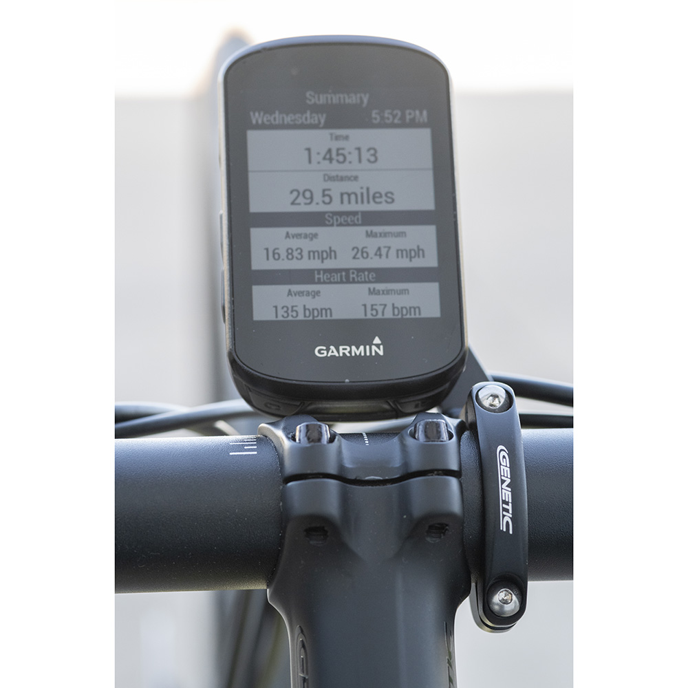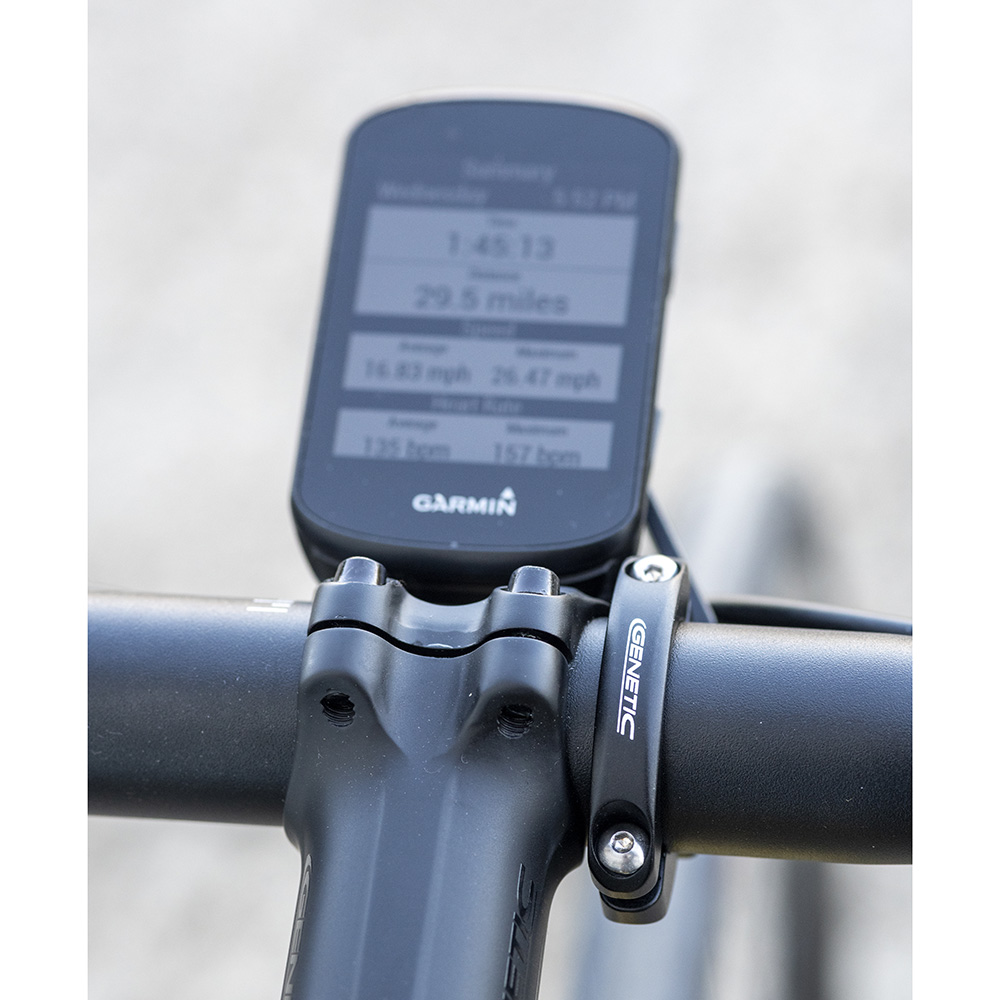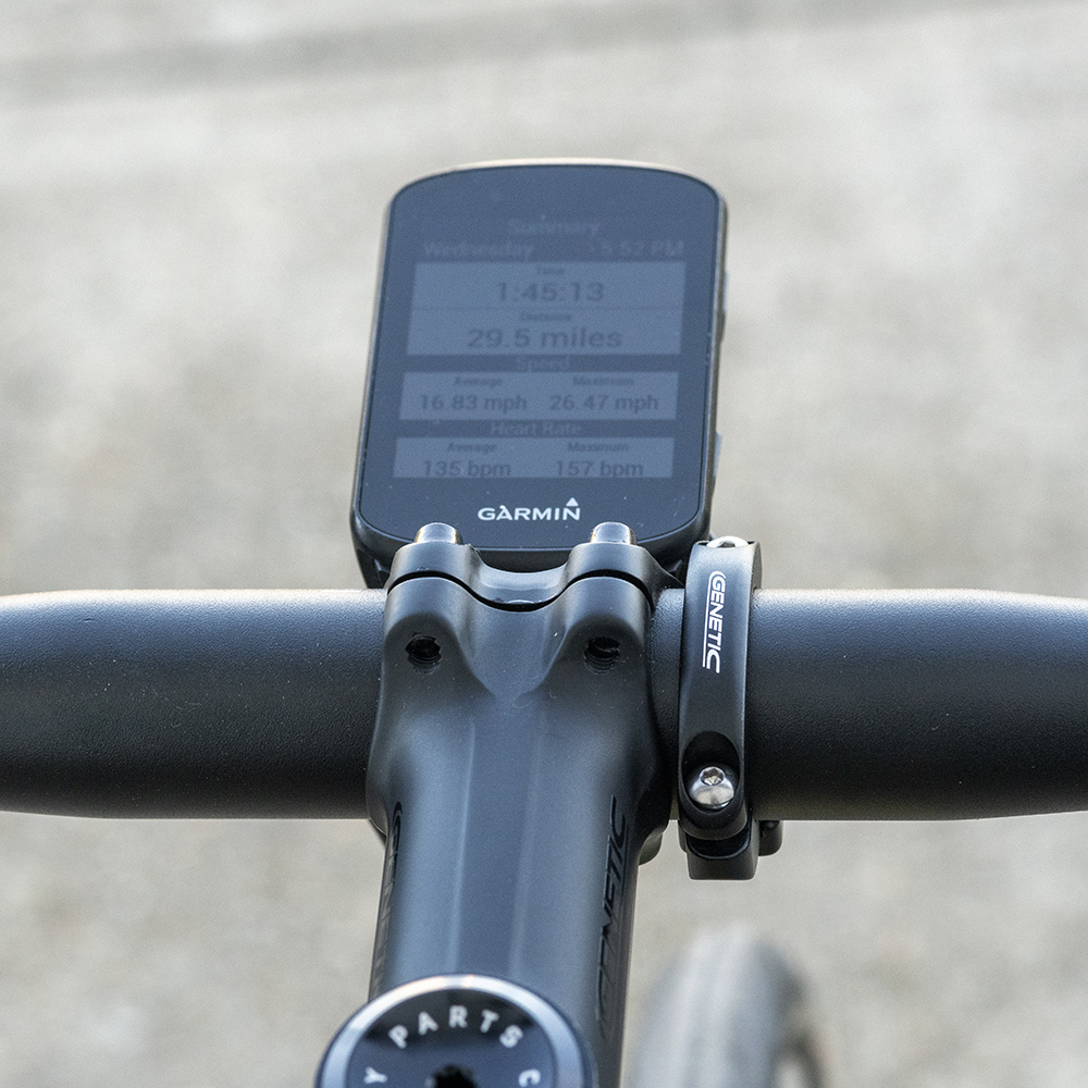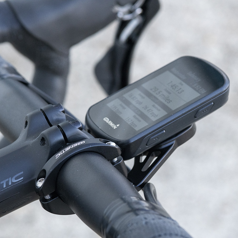 This high quality CNC machined aluminium clamp will neatly clamp onto your handlebars and places your GPS in a forward position of the handlebar stem.