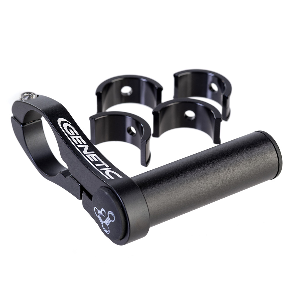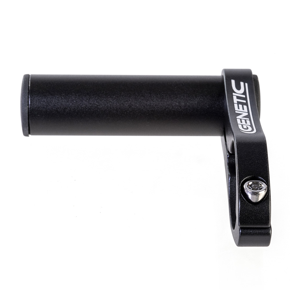 Lightweight CNC alloy clamp-on bracket with an extension tube to replicate a handlebar.