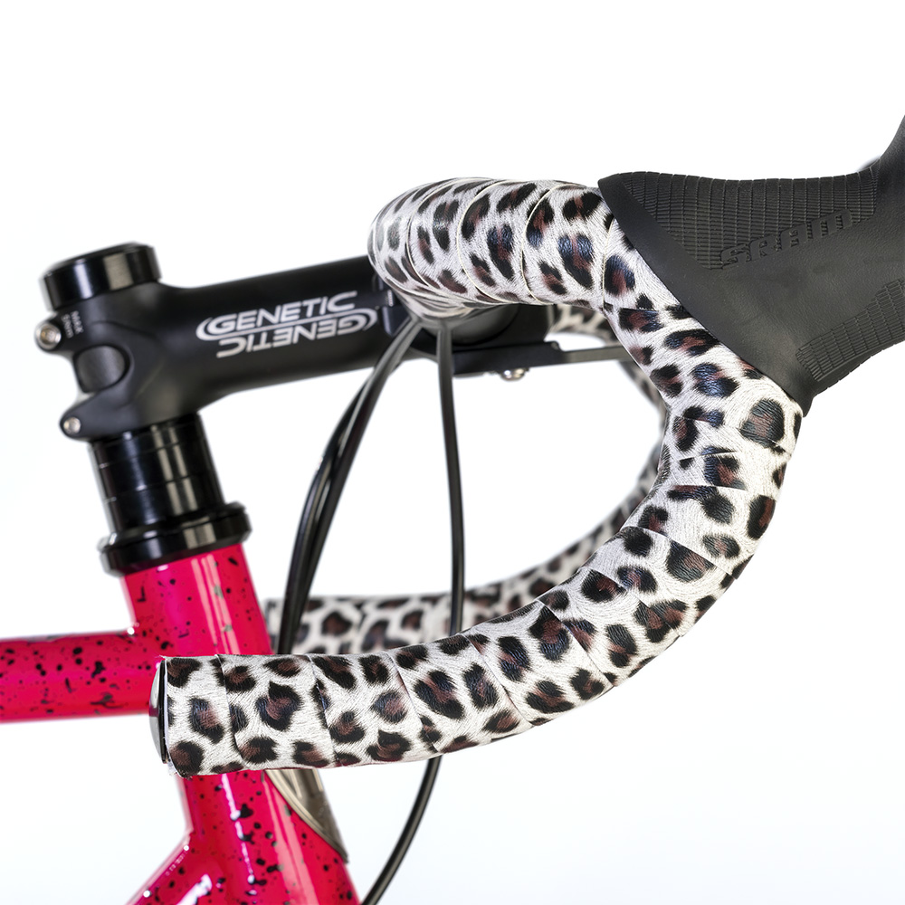 Modern, durable, non- slip padded bar tape in a fun Leopard Skin style print.