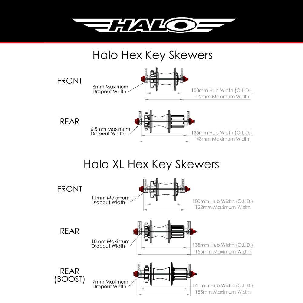 Halo Hex Key Skewers are available for Standard Length versions.