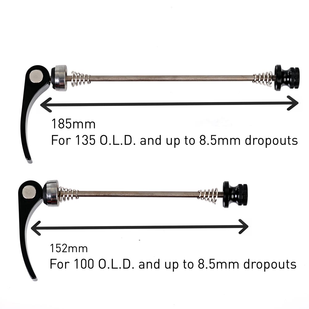 - Dimensions Front: 152mm (100mm O.L.D. + 8.5mm dropouts) Rear: 185mm (135mm + 8.5mm)