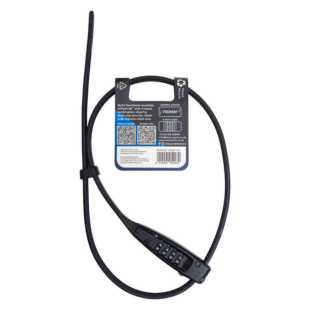 The Straplok™ Combi 10 XL is an extra-long, lightweight, zip-tie style combination bike lock designed for short-term bike security in low-risk environments.