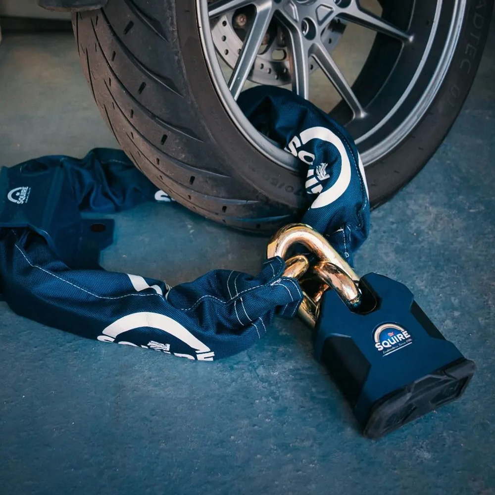 The heavy-duty security chain comes with a signature Squire sleeve, protecting the chain from the elements and your paintwork from the chain.