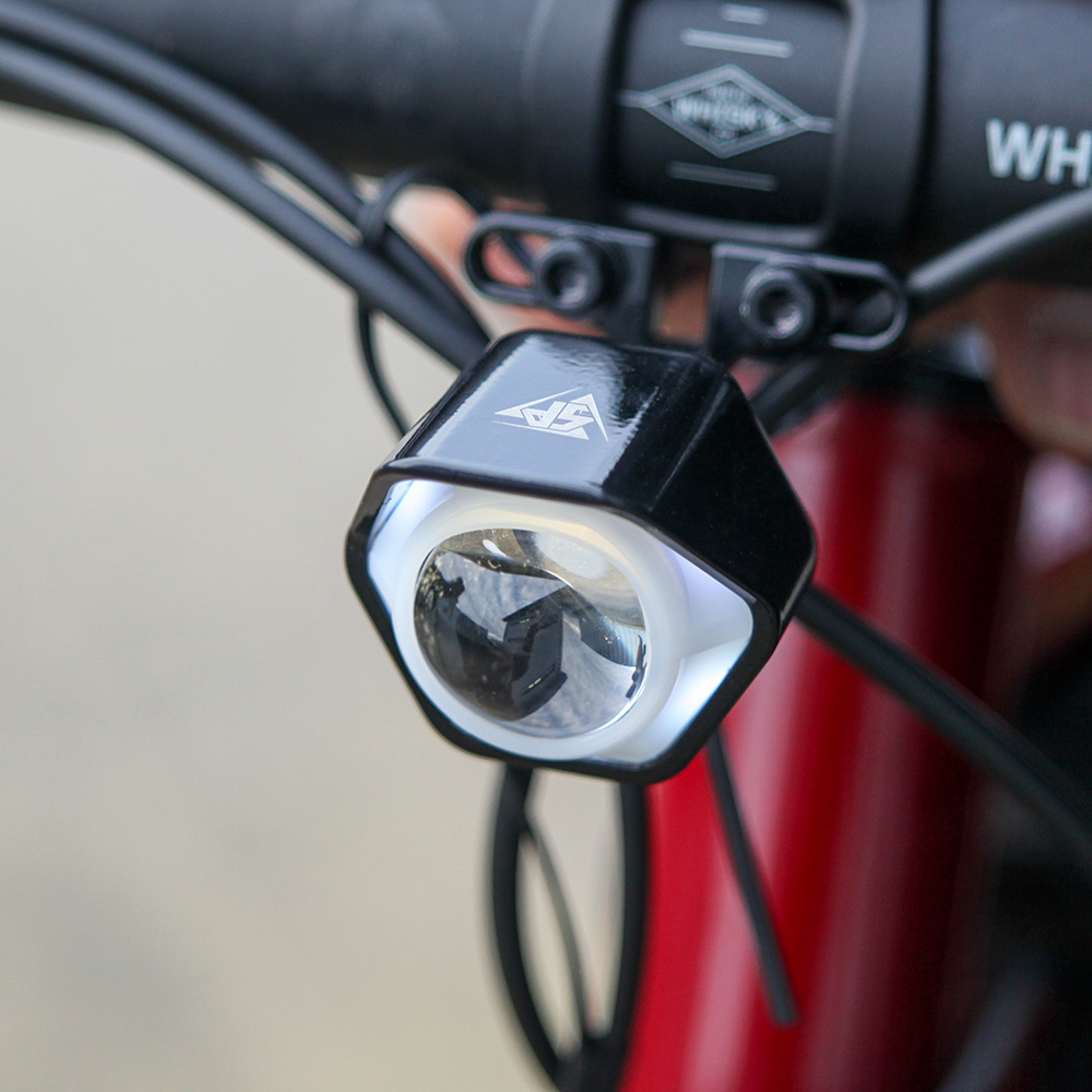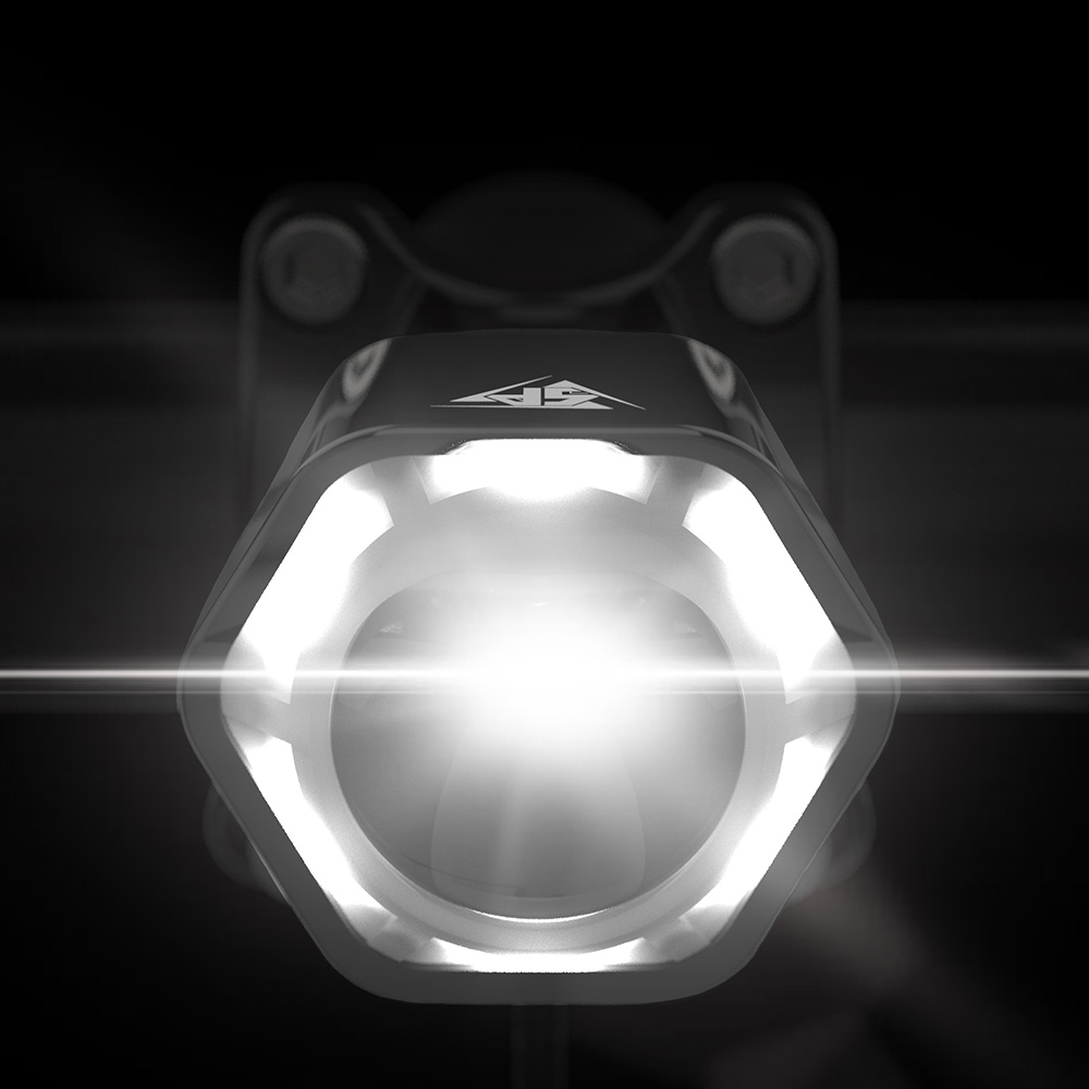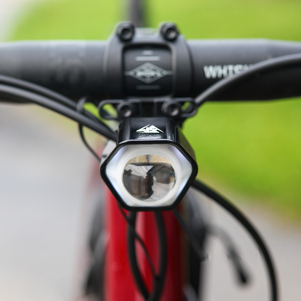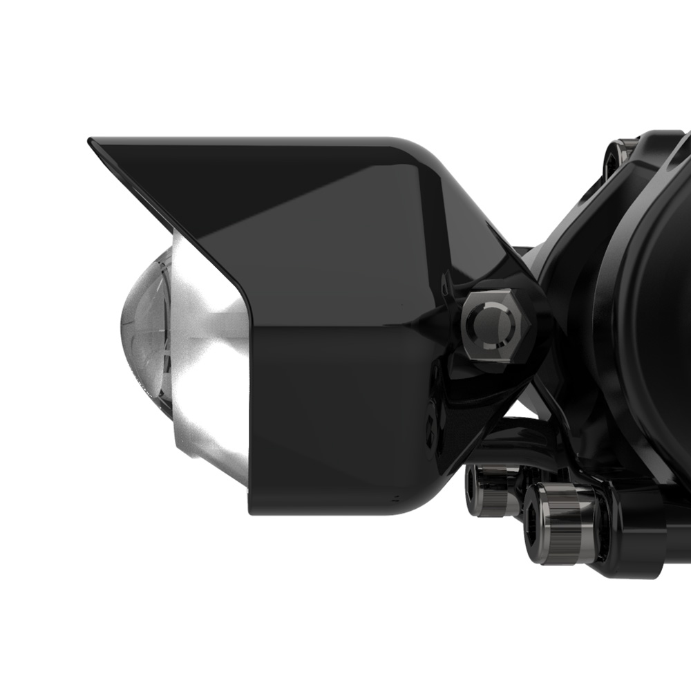 Alloy body with integrated lens hood to prevent the rider from receiving excess glare.