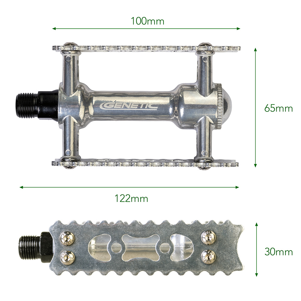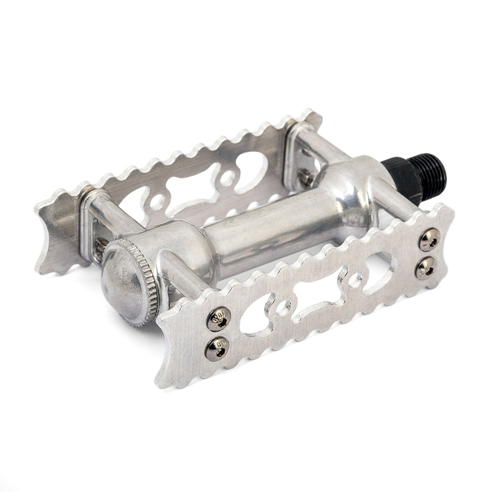 The double-sided serrated edge cages are well-suited for use with regular sole shoes and also a great fit for use with classic type toe-clips and straps.