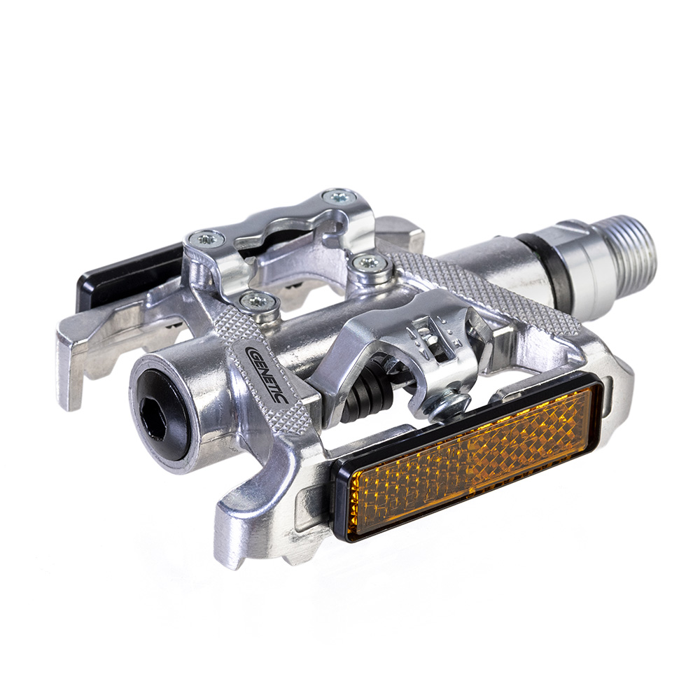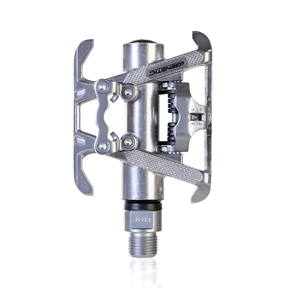 Genetic Switch pedals are balanced so that the regular alloy cage face will usually present itself first, making a quick get-away problem-free with or without clipless footwear. It can then easily be flipped over once riding to gain the full benefits of a clipless system.