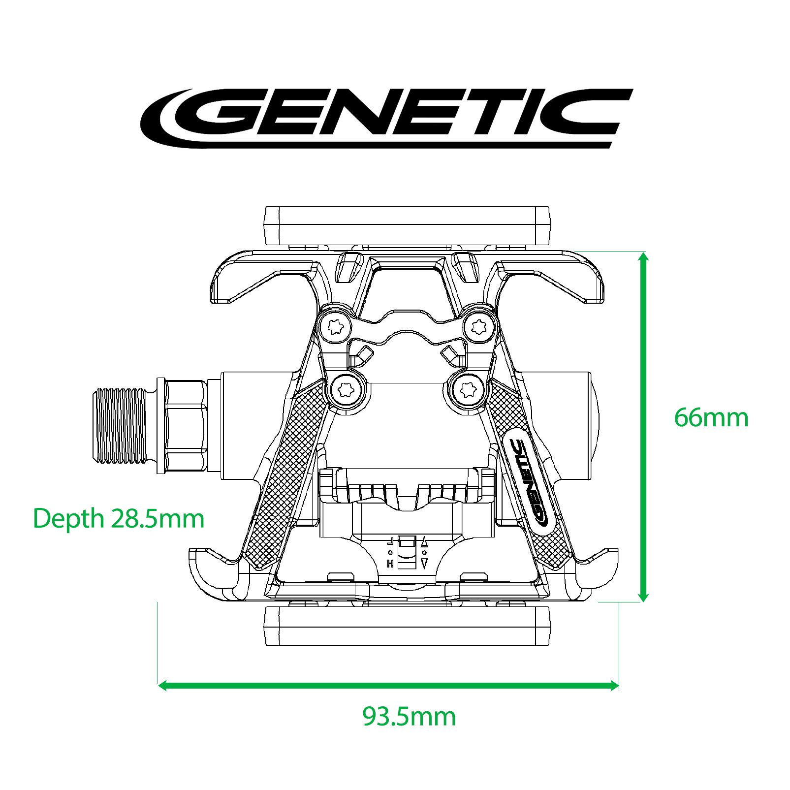 The Genetic Switch uses the popular SPD-compatible clipless cleat system with a knee joint-friendly 4 degrees of lateral float when clipped in.