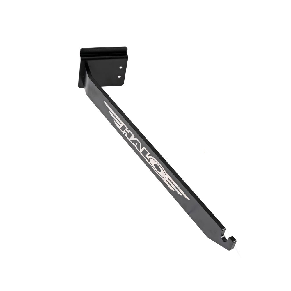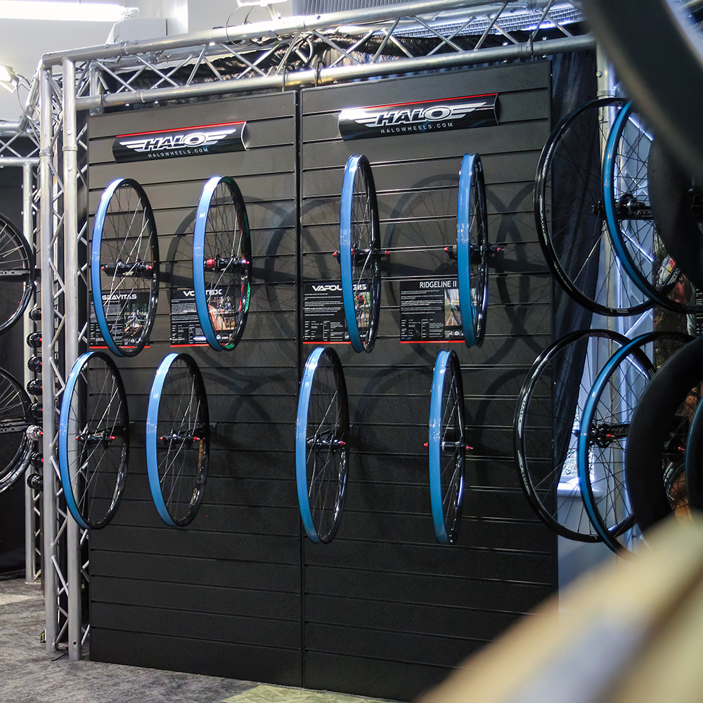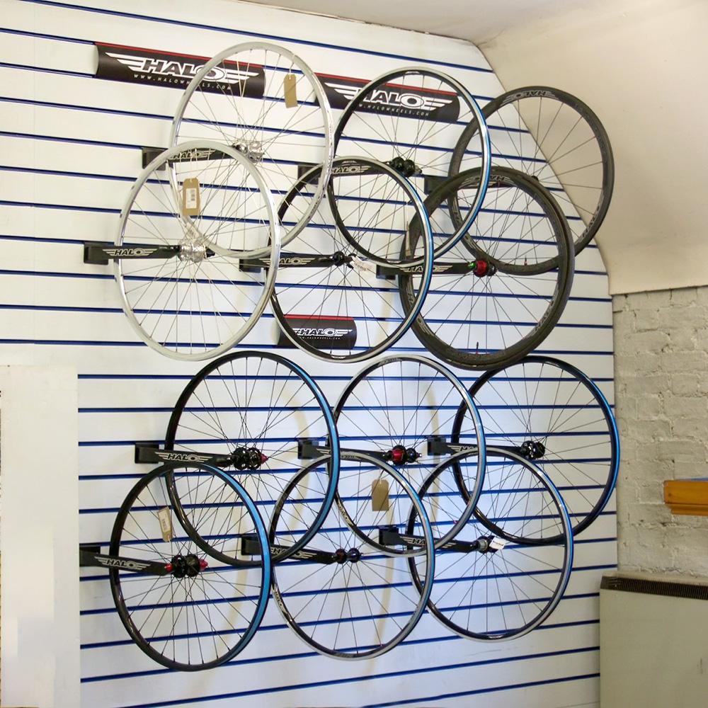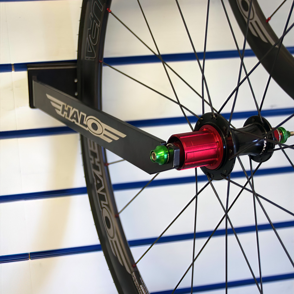 Display arms for individual Halo wheels onto standard ‘Slat-wall’.