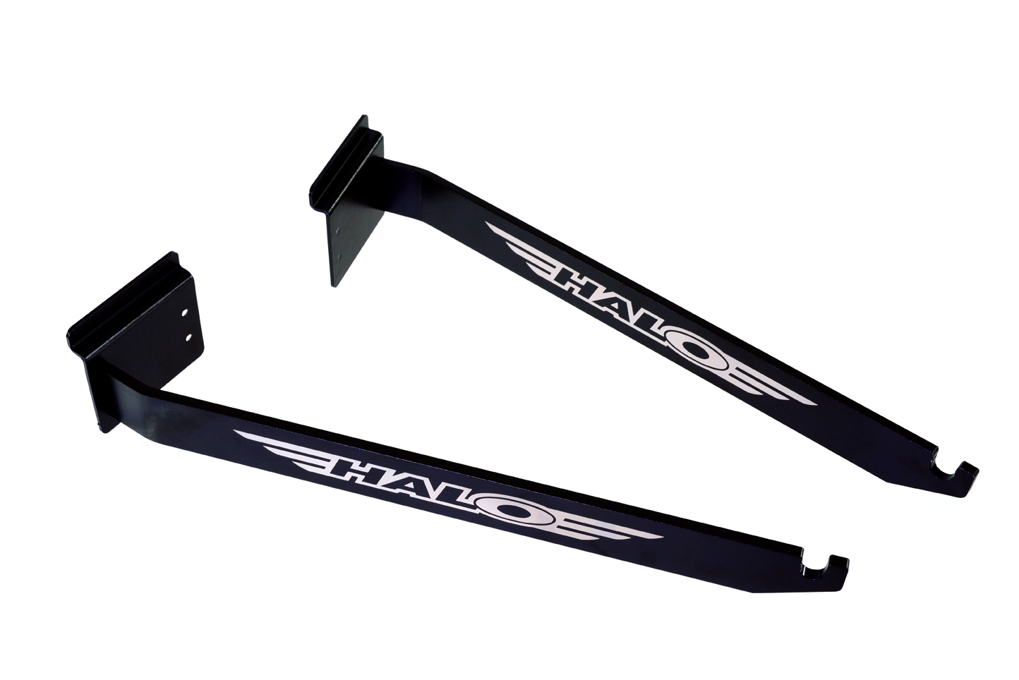 The arms are Black anodised aluminium with Laser etched silver Halo logos applied.