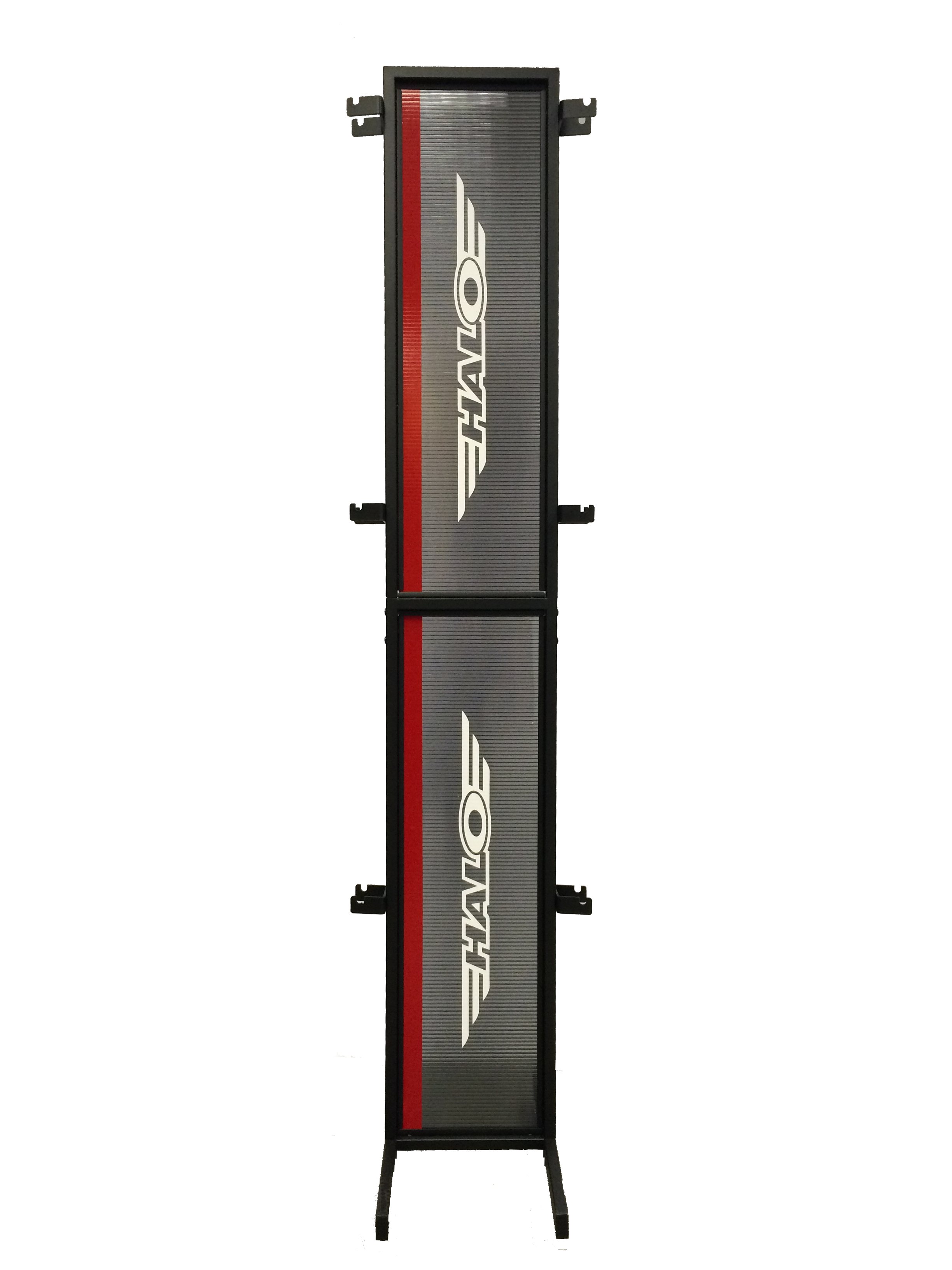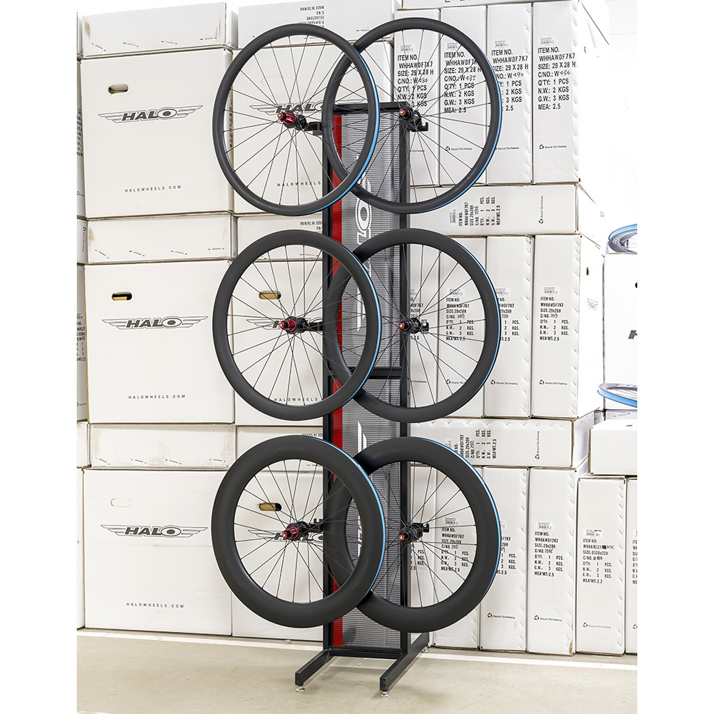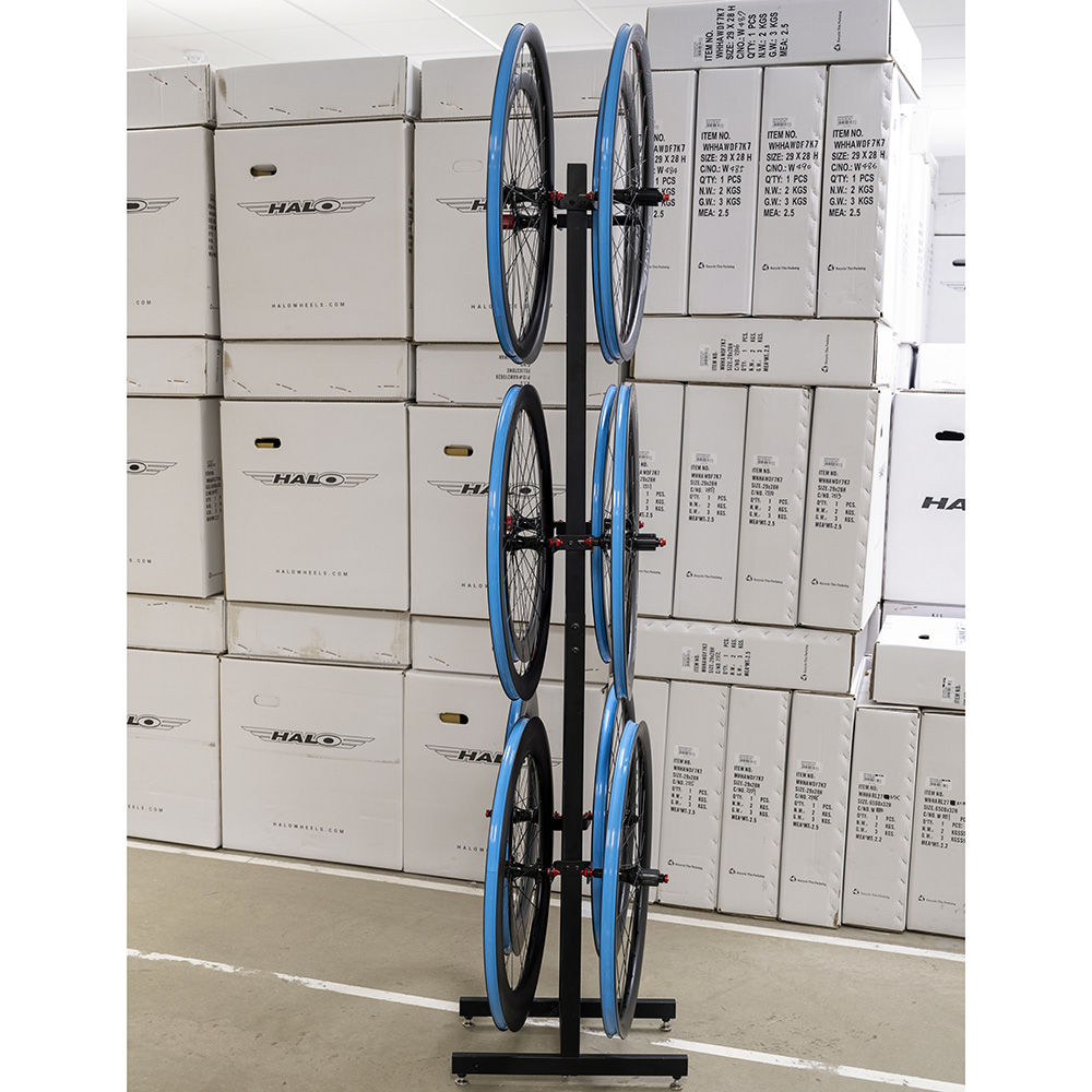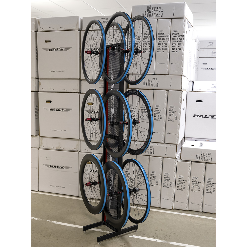 Floor-standing wheel display stand to hold up to 12 Halo wheels (6 pairs).