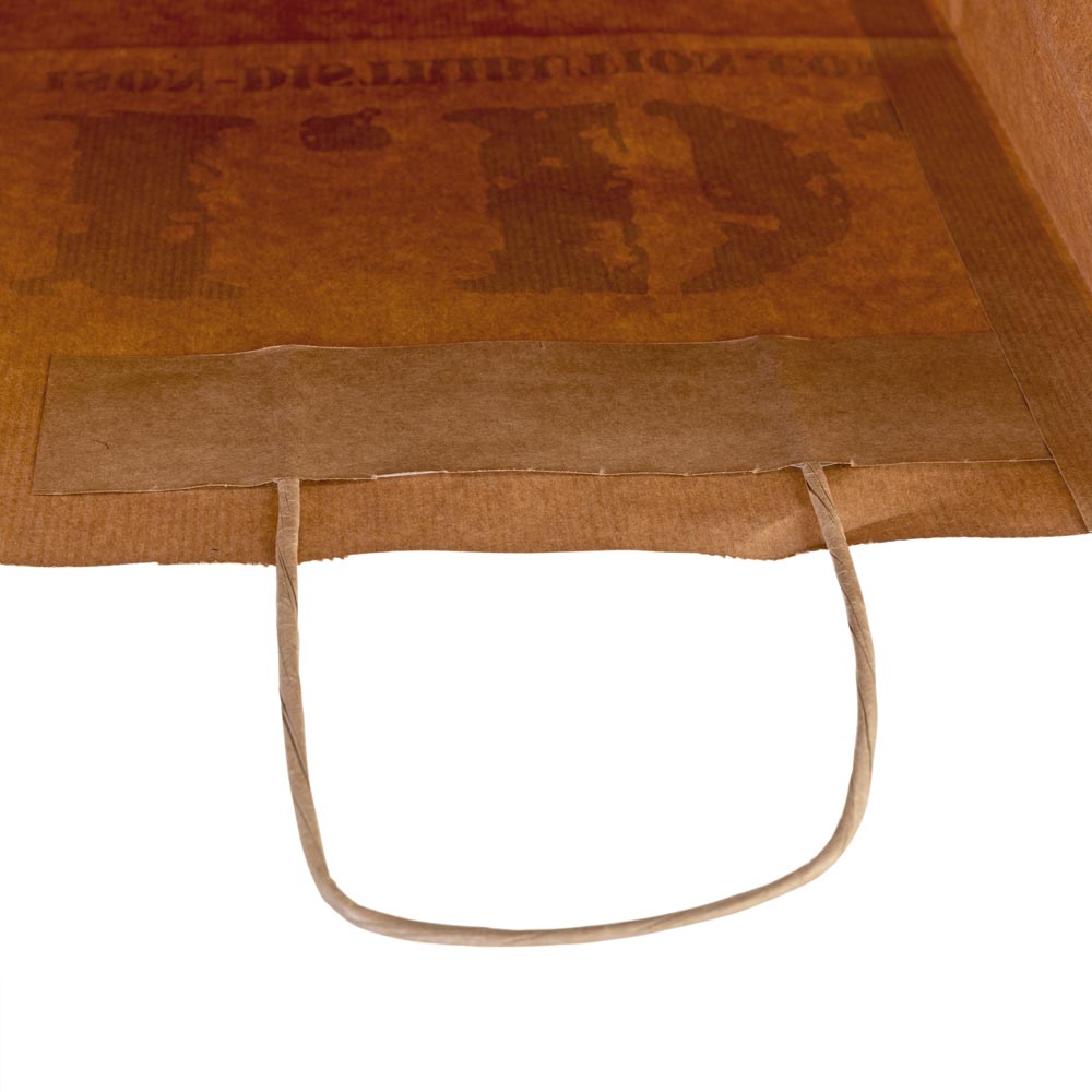 Environmentally friendly brown paper carrier bags with string type D-handles.