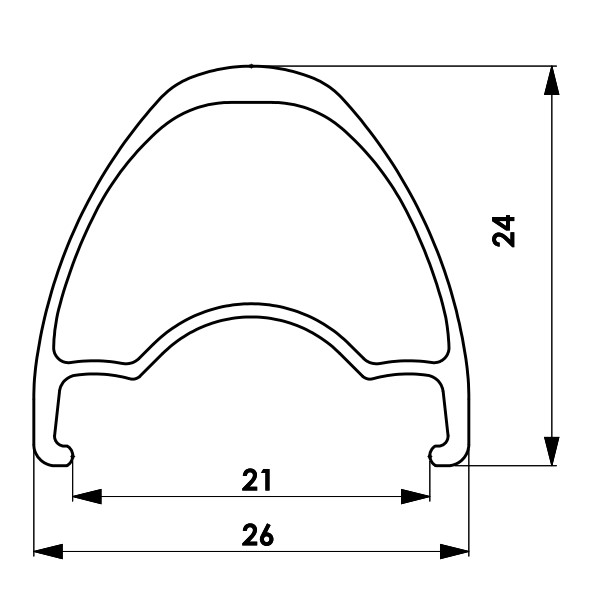 With a 21mm internal and 26mm external width, the rim is suitable for a wide range of tyres from 25c road tyres up to 45c gravel tyres.