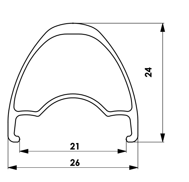 With a 21mm internal and 26mm external width, the rim is suitable for a wide range of tyres from 25c road tyres up to 45c gravel tyres.