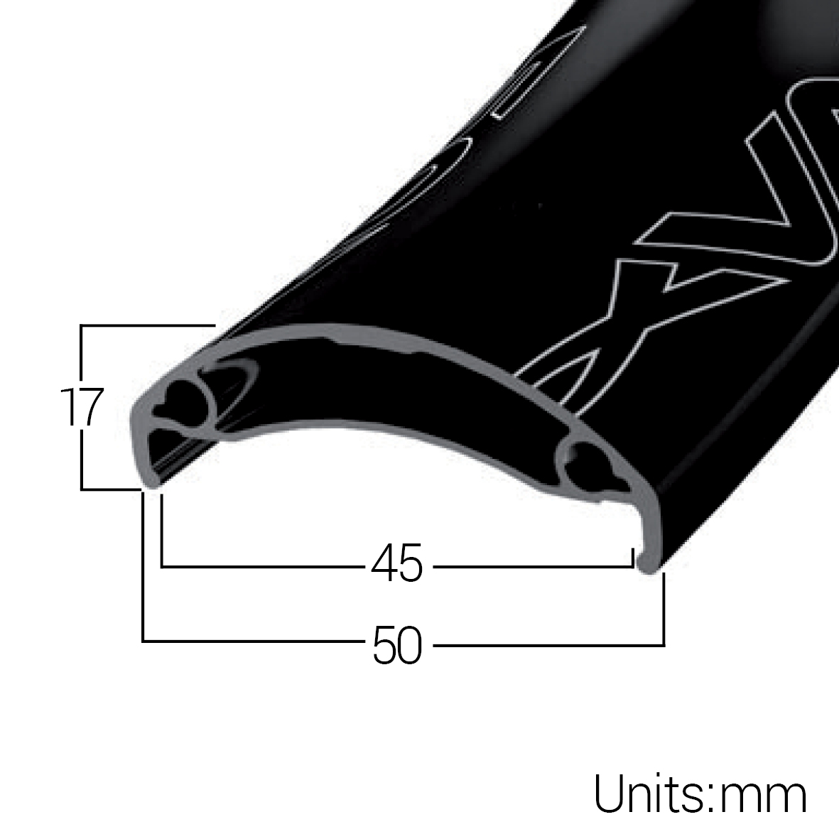 Tubeless ready, light and steadfast, the Vapour 50 rims offer a tyre volume boosting 45mm internal width.