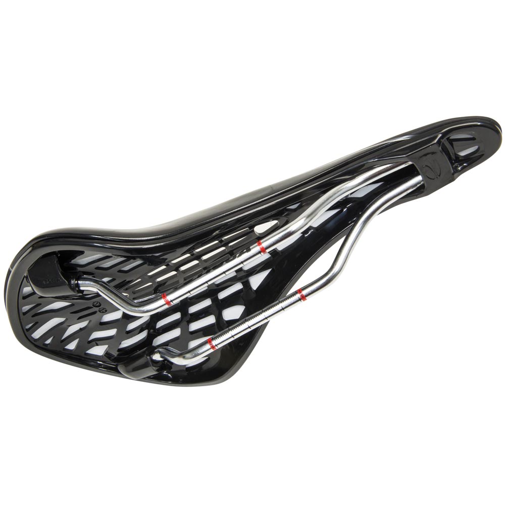 Off the saddle, a dropped tail and downward sloping nose stays out of the way when positioned behind or in front of the saddle, and tapered side slaps that are extended for inner thighs to comfortably grip as needed.