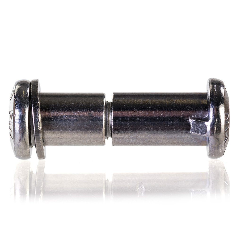 Fixed side has a "key" to lock into frame notch to prevent spinning whilst tightening, and, additionally features a 5mm Hex broach - in case the key/notch fail to hold the torque.