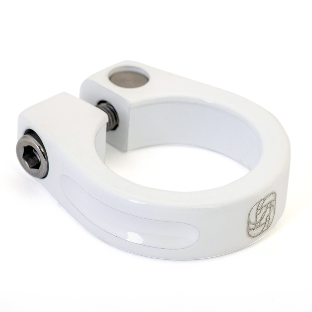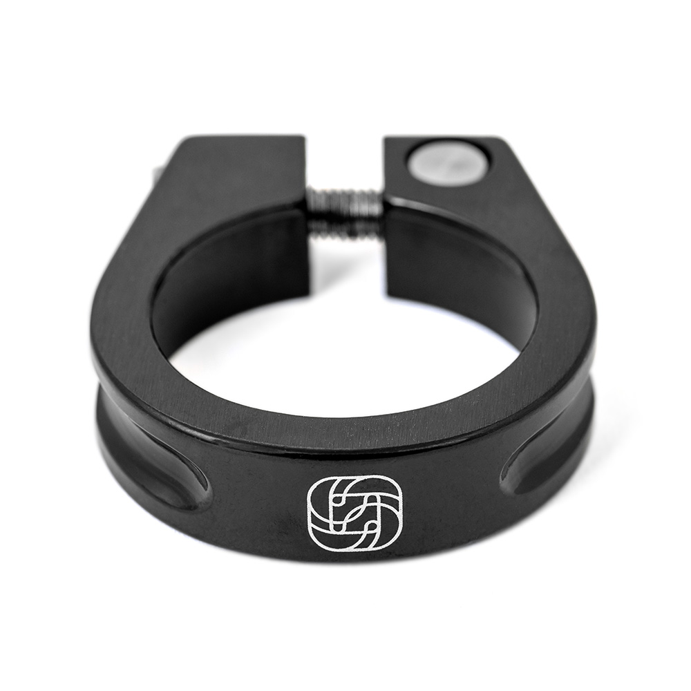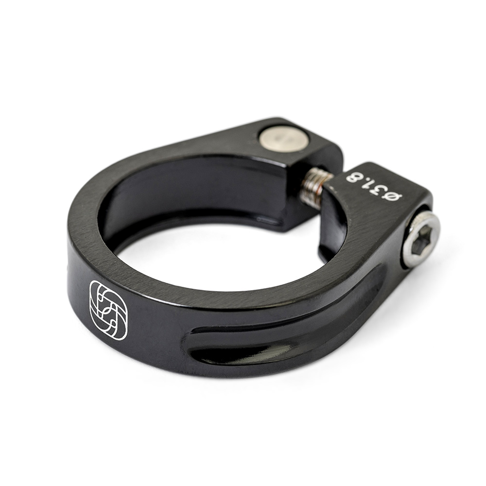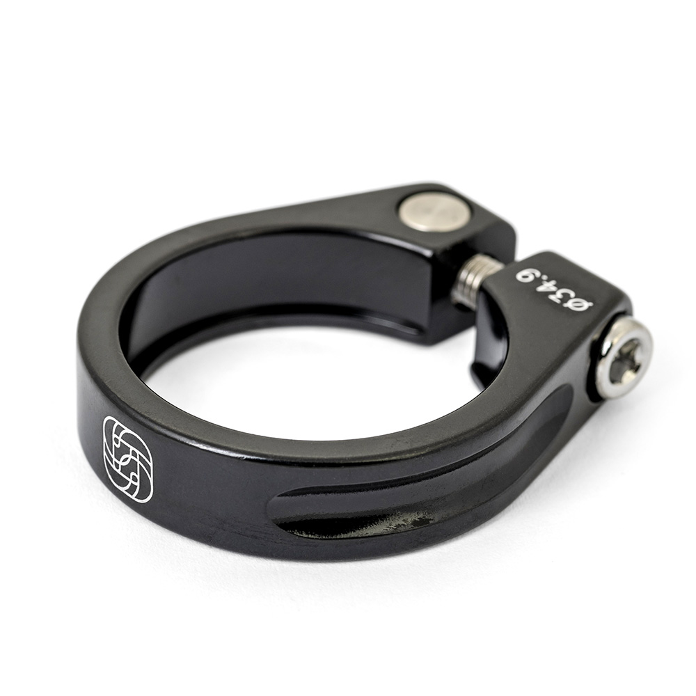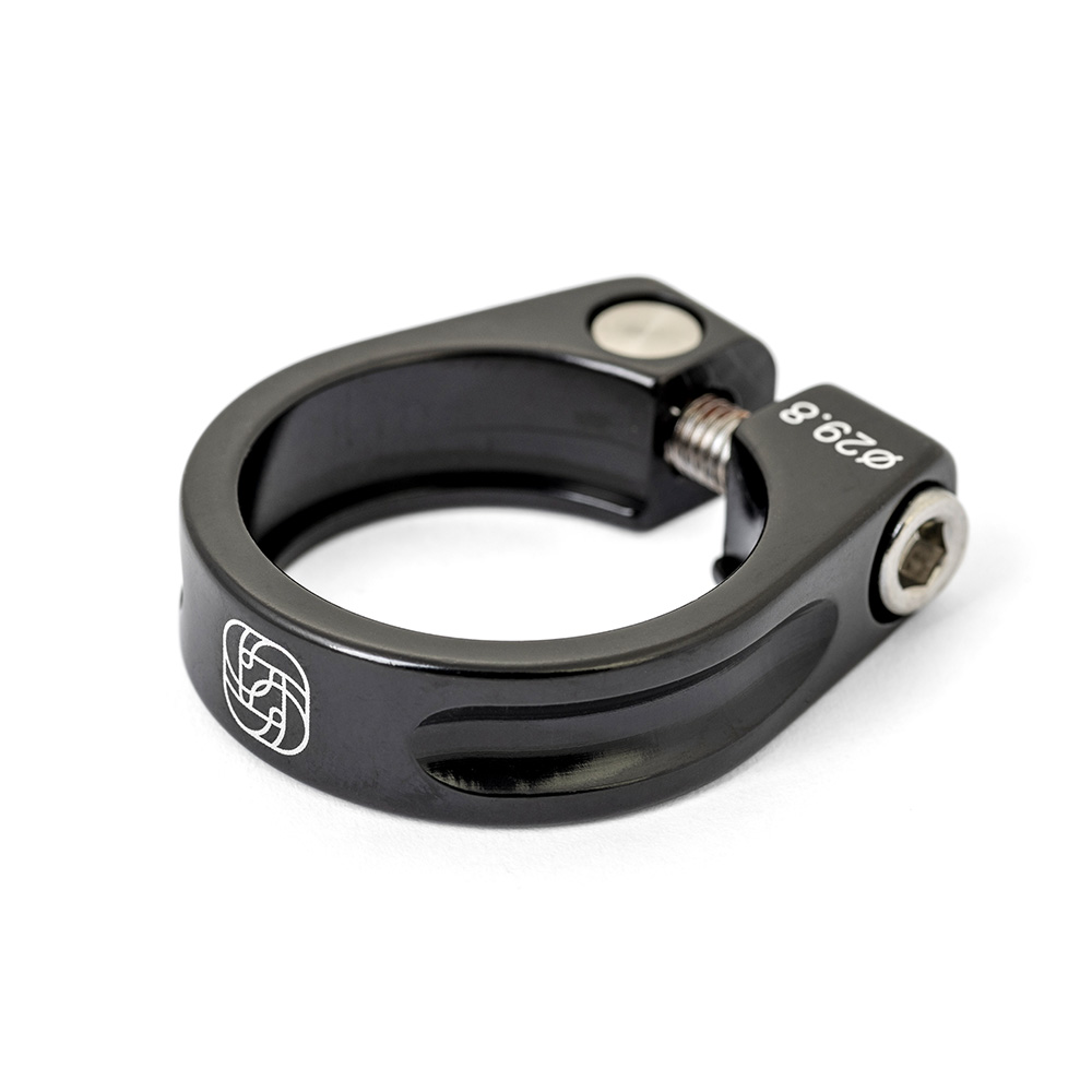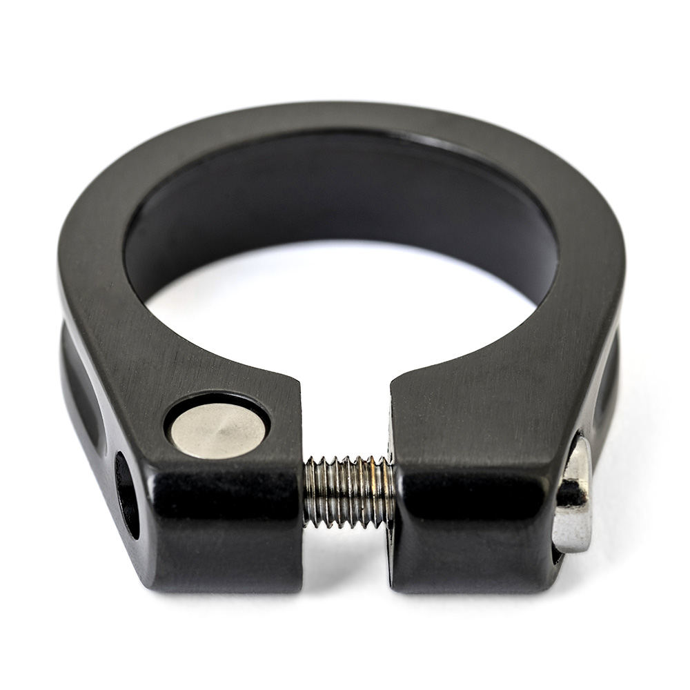 CNC machined alloy clamp with single Cr-Mo bolt and pivoting Cr-Mo threaded insert to avoid 'Banana Bolt Syndrome' and the dreaded 'bolt strip-tease'.