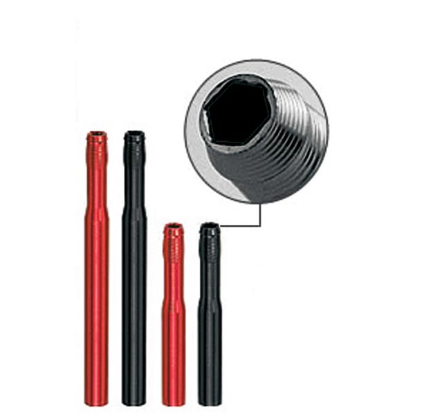 These simple but functional lightweight retro-fit adaptors will convert a standard length Presta Valve into a usable XL valve.